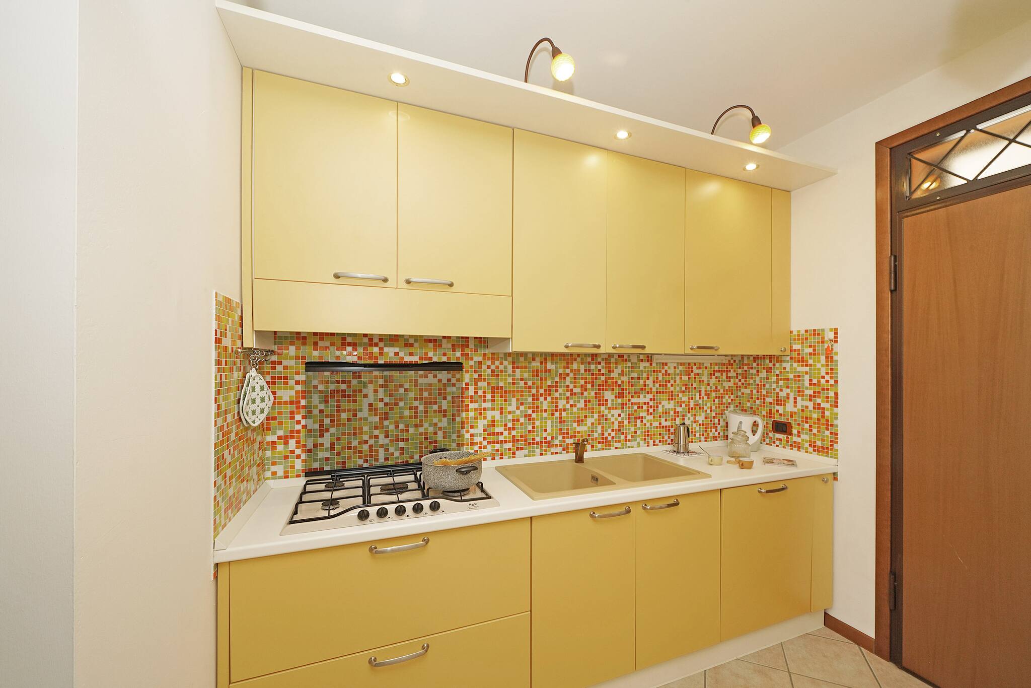 Situato in un residence tranquillo con ampi spazi verdi, questo appartamento è ideale per chi è alla ricerca di tranquillità ma con tutti i servizi vicini. Con ingresso a piano terra, accederete subito al soggiorno, arredato con semplicità ma funzionale,provvisto di divano, tavolo da pranzo e tv a schermo piatto; nello stesso ambiente si trova la cucina con nuovo piano ad induzione, completamente attrezzata.