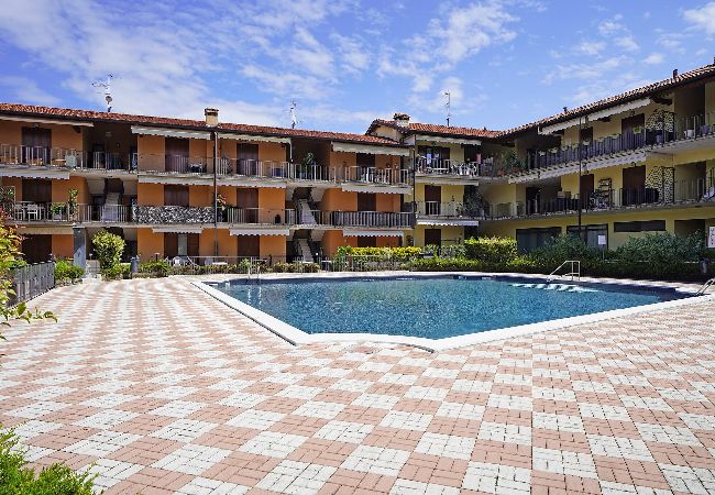 Con ingresso al piano terra, si accede all'ampia cucina completamente attrezzata separata da una porta scorrevole che da accesso al luminoso soggiorno con divano letto, tv e tavolo da pranzo; la perla di questo appartamento è la terrazza, grande e spaziosa , ideale per cenare godendo della fresche sere estive lontano dai rumori del traffico. A destra della sala si accede alla camera da letto matrimoniale e al delizioso bagno con doccia. Piscina ad uso gratuito degli ospiti. Garage gratuito.