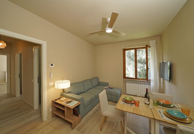 Con ingresso al piano terra, si accede all'ampia cucina completamente attrezzata separata da una porta scorrevole che da accesso al luminoso soggiorno con divano letto, tv e tavolo da pranzo; la perla di questo appartamento è la terrazza, grande e spaziosa , ideale per cenare godendo della fresche sere estive lontano dai rumori del traffico. A destra della sala si accede alla camera da letto matrimoniale e al delizioso bagno con doccia. Piscina ad uso gratuito degli ospiti. Garage gratuito.