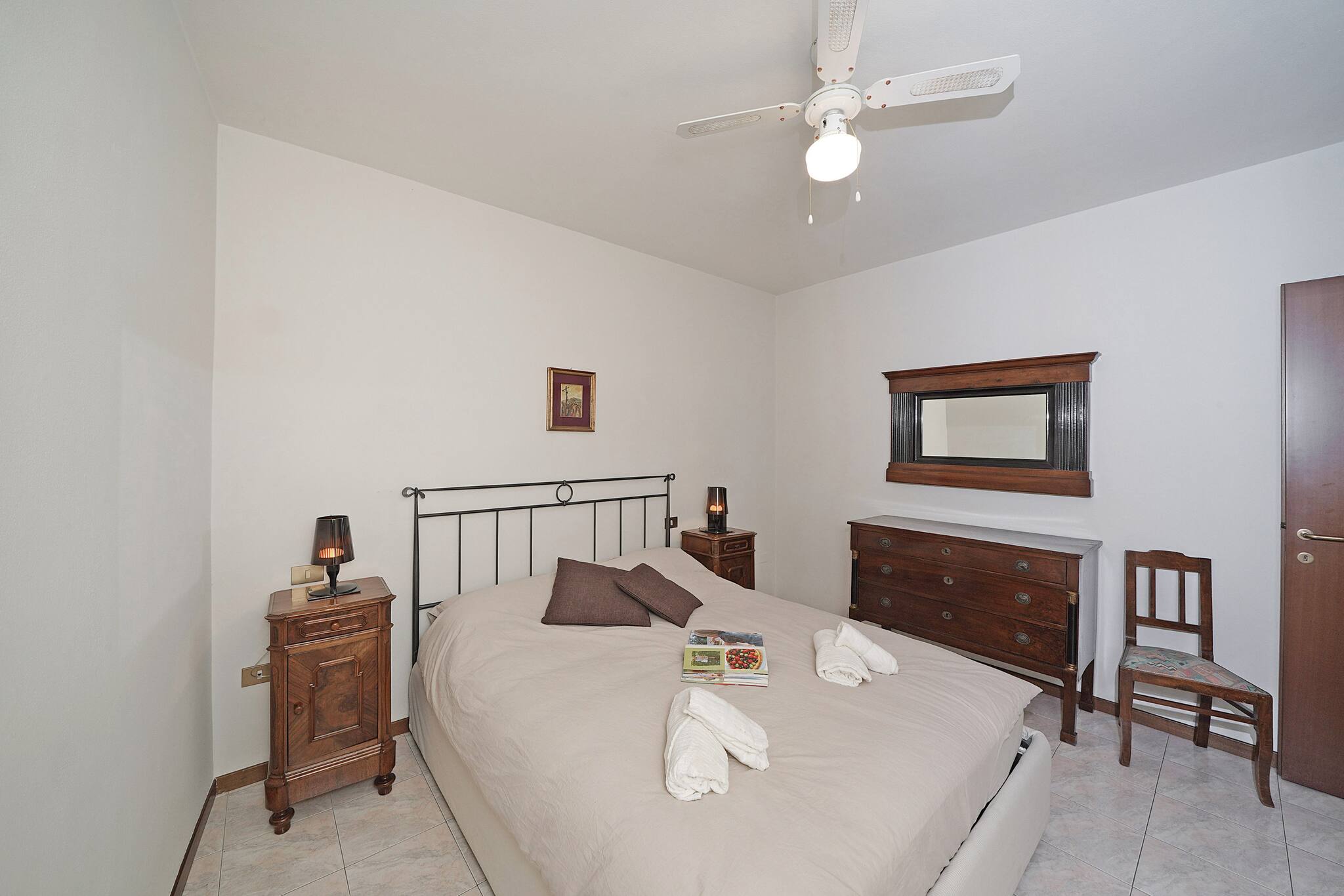 Procedendo verso la zona notte troverete le due ampie camere da letto matrimoniali, anch'esse arredate seguendo lo stile della casa e poi il bagno provvisto di vasca con doccia, lavandino e wc.
