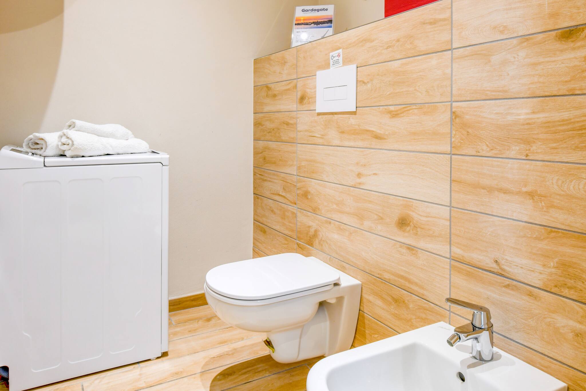 L'appartamento, dotato di aria condizionata in tutte le stanze, continua con la camera da letto dotata di un comodo letto matrimoniale, scrivania e armadio. Il bagno è completo di doccia, lavabo, WC, bidet e lavatrice. Gli ospiti possono parcheggiare gratuitamente la loro auto nel garage privato dell'appartamento. Con un piccolo costo extra, possibilità di fornire una culla e un seggiolino per bambini. Gli animali domestici non sono ammessi.L'appartamento, per le finiture di buon livello e gli accessori, garantisce comfort agli ospiti in vacanza sul Lago di Garda; a pochi passi a piedi si raggiungono facilmente le principali Piazze di Salò, il lago, ristoranti, bar, caffè e il porto. Dall'appartamento sono facilmente raggiungibili il campo da Golf "Il Colombaro", i parchi divertimenti di Gardaland e Caneva World (45 minuti) il porto per noleggiare barche e per i giri turistici del Lago in battello visitando le città di Bardolino, Lazise, Garda, Limone, Desenzano e Sirmione. A 50 minuti di macchina o 30 con il treno dalla stazione ferroviaria di Desenzano, si raggiunge la storica città di Verona; sono inoltre facilmente raggiungibili le città di Venezia e di Milano con i collegamenti stradali o ferroviari. Il Lago di Garda offre anche noleggi di barche, ciclismo sulle colline, scalate di roccia, golf, assaggi di vini e di prodotti tipici locali e diverse escursioni. L'aeroporto più vicino è quello di Verona distante solamente 50 minuti di macchina.. Tassa di soggiorno: € 1,50 al giorno a persona da pagare al check-in a partire da 1 notti per un massimo di 30 notti