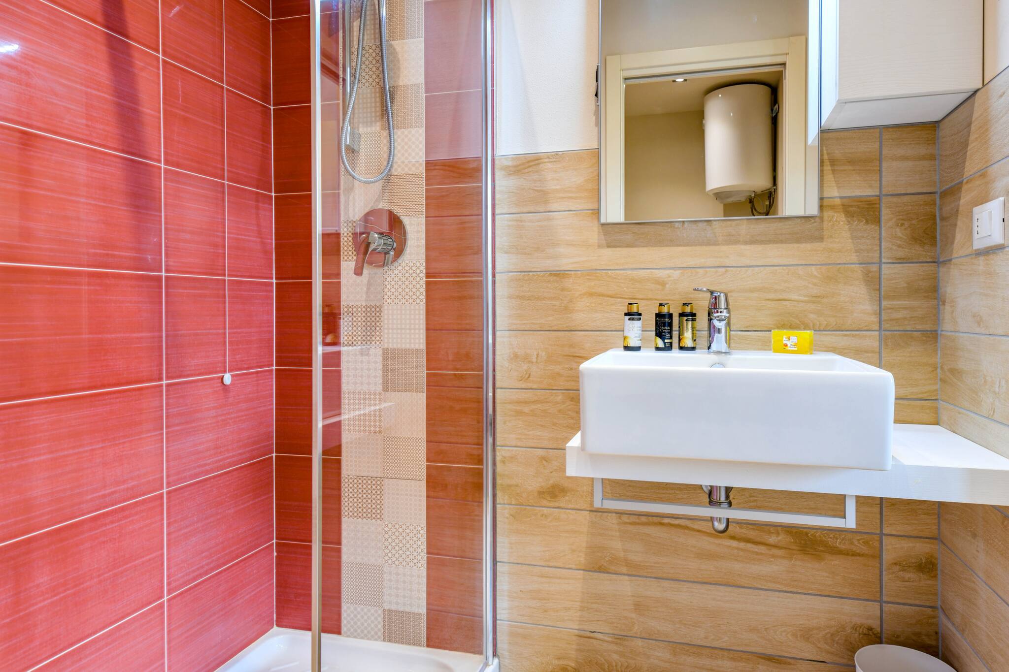 L'appartamento viene infine completato dal bagno dotato di doccia, lavabo, WC, bidet e lavatrice.