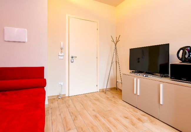 L'appartamento, dotato di connessione ad internet Wi-Fi inclusa, si trova al piano secondo e da il benvenuto agli ospiti con l'ampio e luminoso soggiorno dotato di divano letto matrimoniale, tavolo da pranzo con sedie, TV a schermo piatto con canali SAT internazionali, cucina completamente attrezzata di piano cottura, frigorifero, congelatore, microonde, lavastoviglie, bollitore elettrico, macchine del caffè, spremi agrumi e tostapane. Il soggiorno affaccia sul balcone privato dell'appartamento.