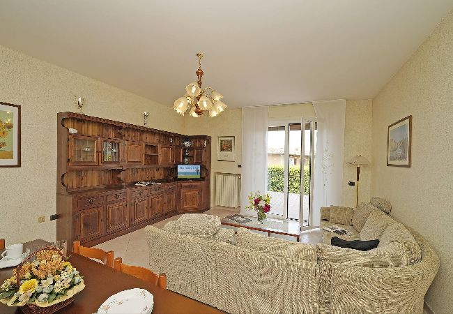 Appartamento al piano terra. Soggiorno con vista giardino: divano letto 1 piazza e mezza e tavolo da pranzo per 4 posti. Accesso diretto al giardino attrezzato con tavolino e sedie. Cucina a induzione : frigo con freezer, stoviglie e pentole, lavastoviglie,forno a microonde, macchinetta caffè, bollitore, tostapane. 1 bagno: lavabo, bidet, doccia. 1 camera da letto: matrimoniale con porta finestra e ampio armadio . SI aria condizionata in soggiorno. NO lavatrice. Wifi: incluso .