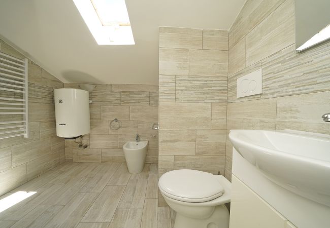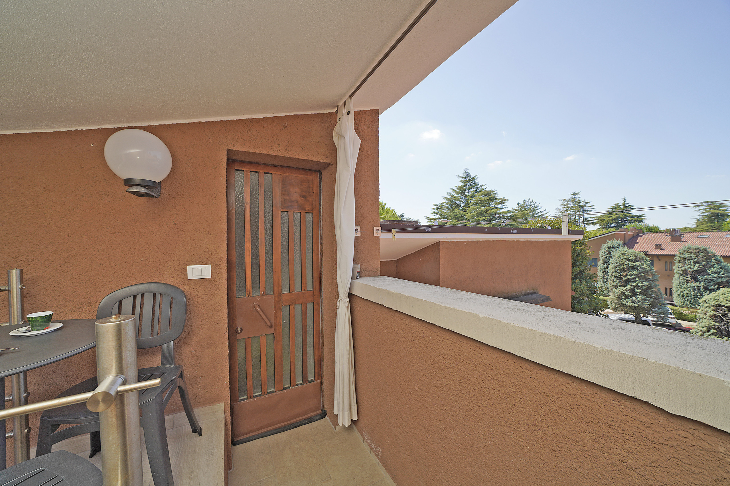 Il bagno privato con doccia e l'aria condizionata assicurano il massimo comfort, mentre il riscaldamento centrale garantisce un ambiente sempre piacevole. L'appartamento dispone di un piccolo balcone e una terrazza di 7 mq, perfetti per godersi momenti di relax all'aria aperta.