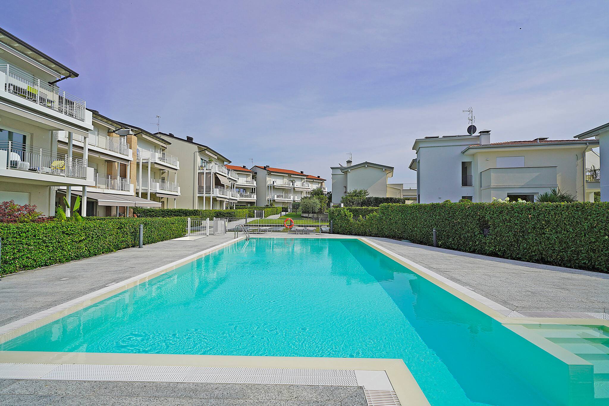 Delizioso Appartamento al secondo piano in residence curato ed elegante, accessibile con scale e ascensore. Soggiorno: divano doppio,tv e tavolo da pranzo. Cucina a gas completamente fornita con forno,microonde, frigo con freezer, stoviglie e pentole, macchinetta caffè, bollitore, lavastoviglie. Ampio balcone vista giardino e piscina con tavolo e sedie. Aria condizionata di nuova generazione in tutta la casa. 1 bagno: lavabo, bidet, doccia,lavatrice.