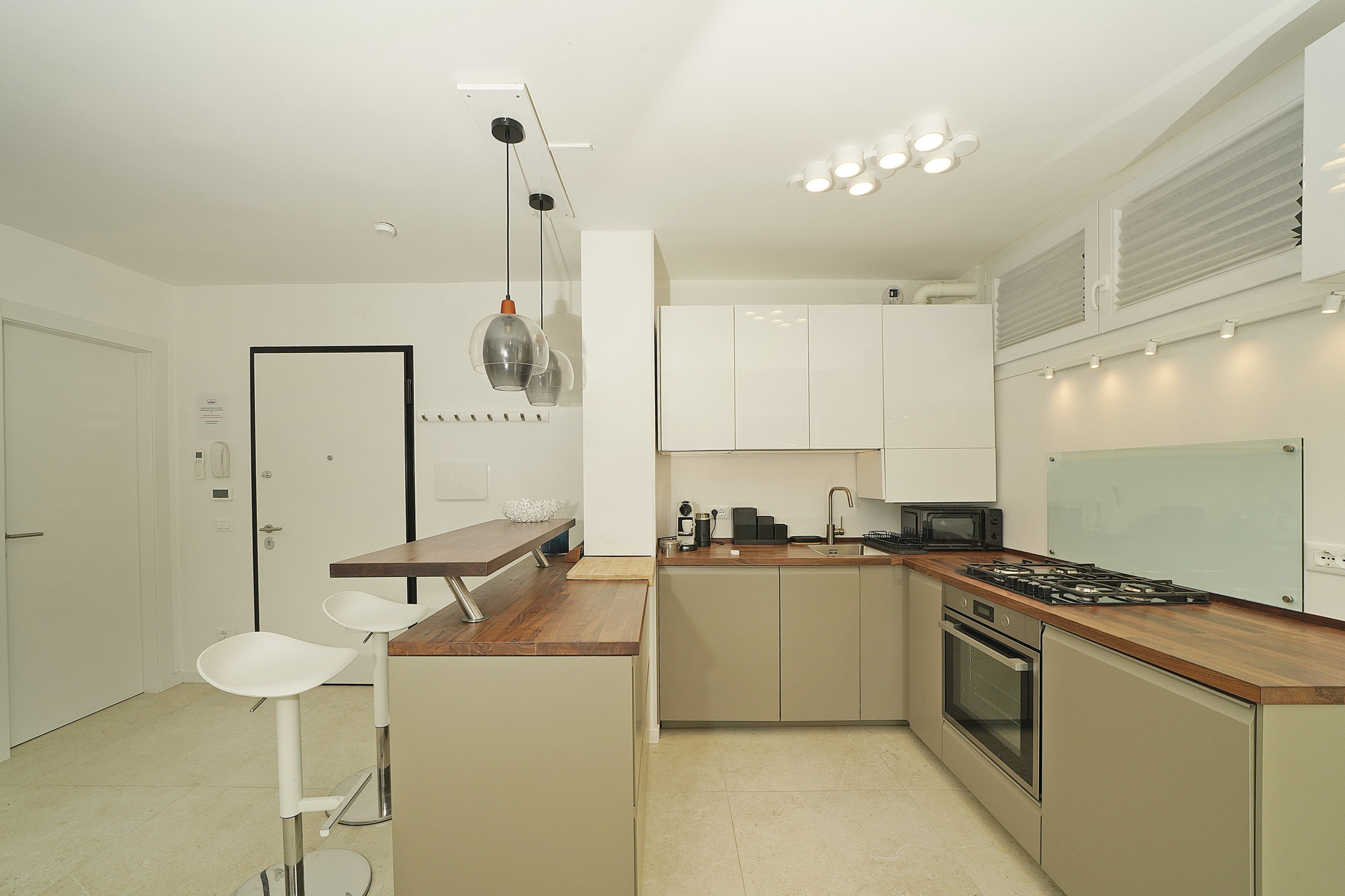 La cucina indipendente è completamente attrezzata con tutti i comfort moderni: frigorifero, congelatore, lavatrice, macchina del caffè, forno, microonde, lavastoviglie e tutti gli utensili necessari per preparare pasti deliziosi. L'appartamento è inoltre dotato di aria condizionata e riscaldamento centrale per garantire il massimo comfort in ogni stagione.