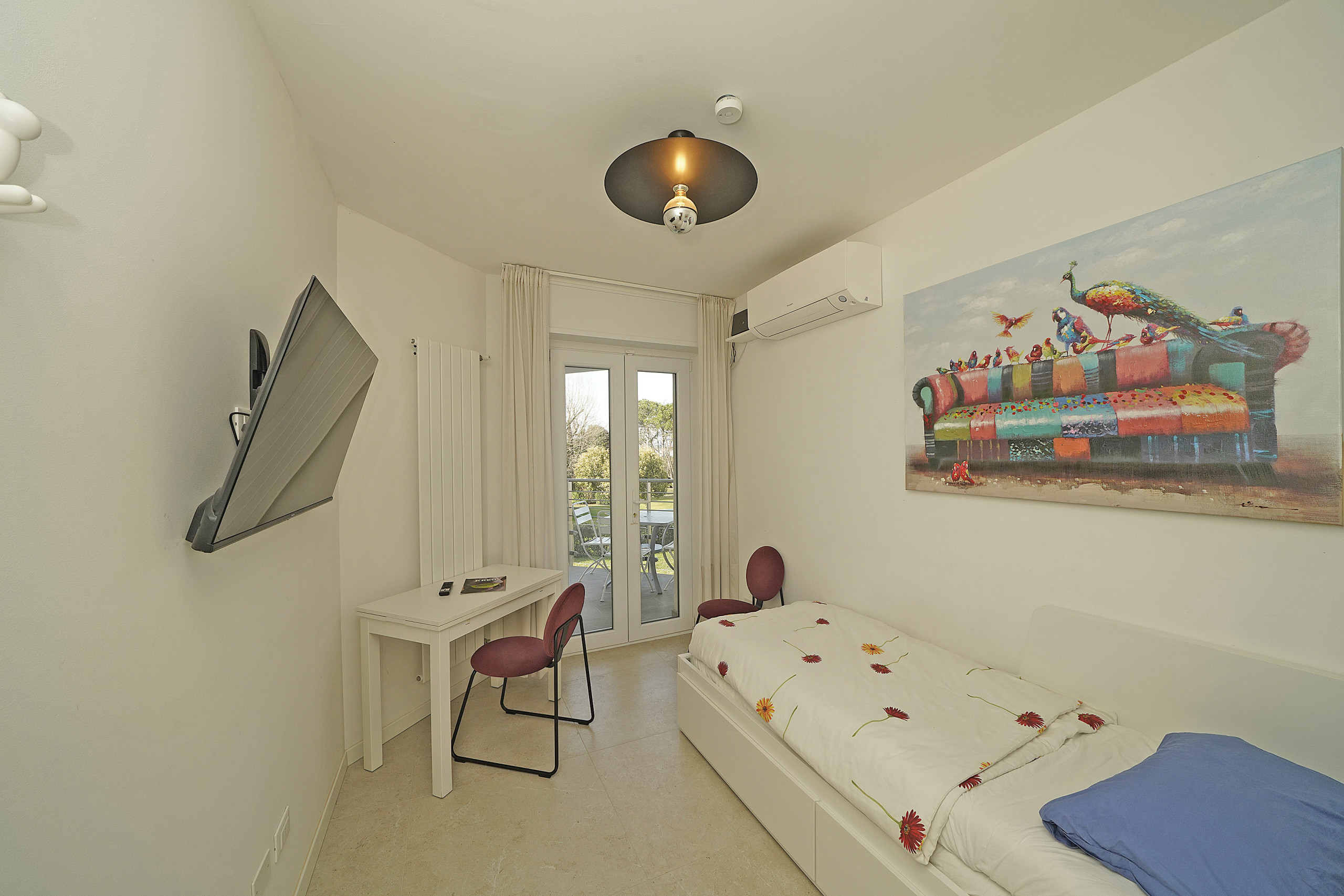 Accanto al soggiorno si può accedere alla camera matrimoniale dotata di ampia porta finestra che comunica con il balconcino privato.