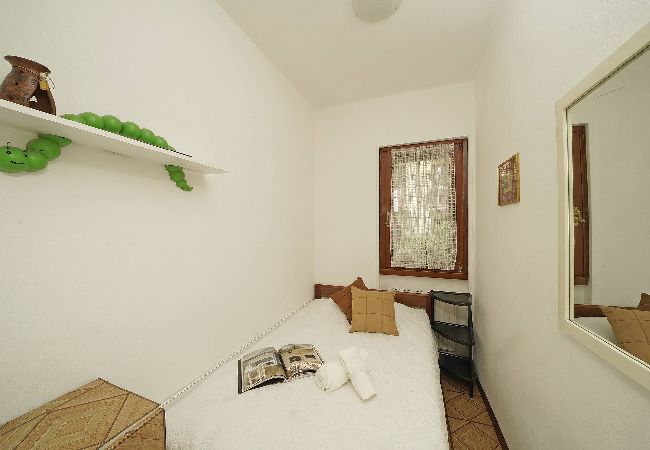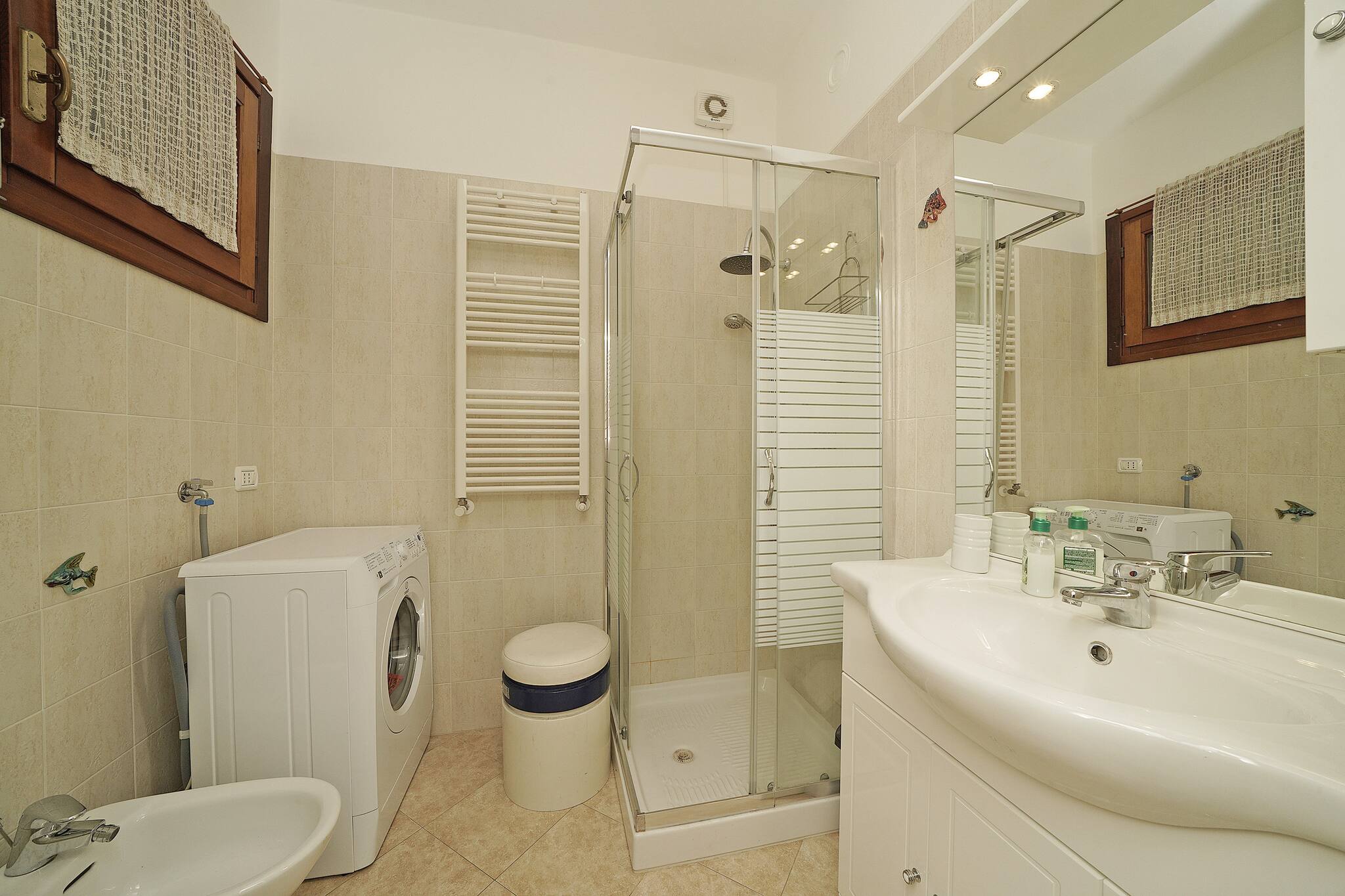 Appartamento al primo piano. Soggiorno ampio: grande divano letto doppio, t e tavolo da pranzo. Accesso diretto al balconcino attrezzato con tavolino e sedie. Cucina separata a induzione: frigo con freezer, stoviglie e pentole, lavastoviglie,forno, microonde, bollitore. 1 bagno: lavabo, bidet, doccia. 1° camera da letto: matrimoniale con armadio, porta finestra che da sul balcone.2° camera da letto: letto matrimoniale con armadio, porta finestra che da sul balcone. No aria condizionata.