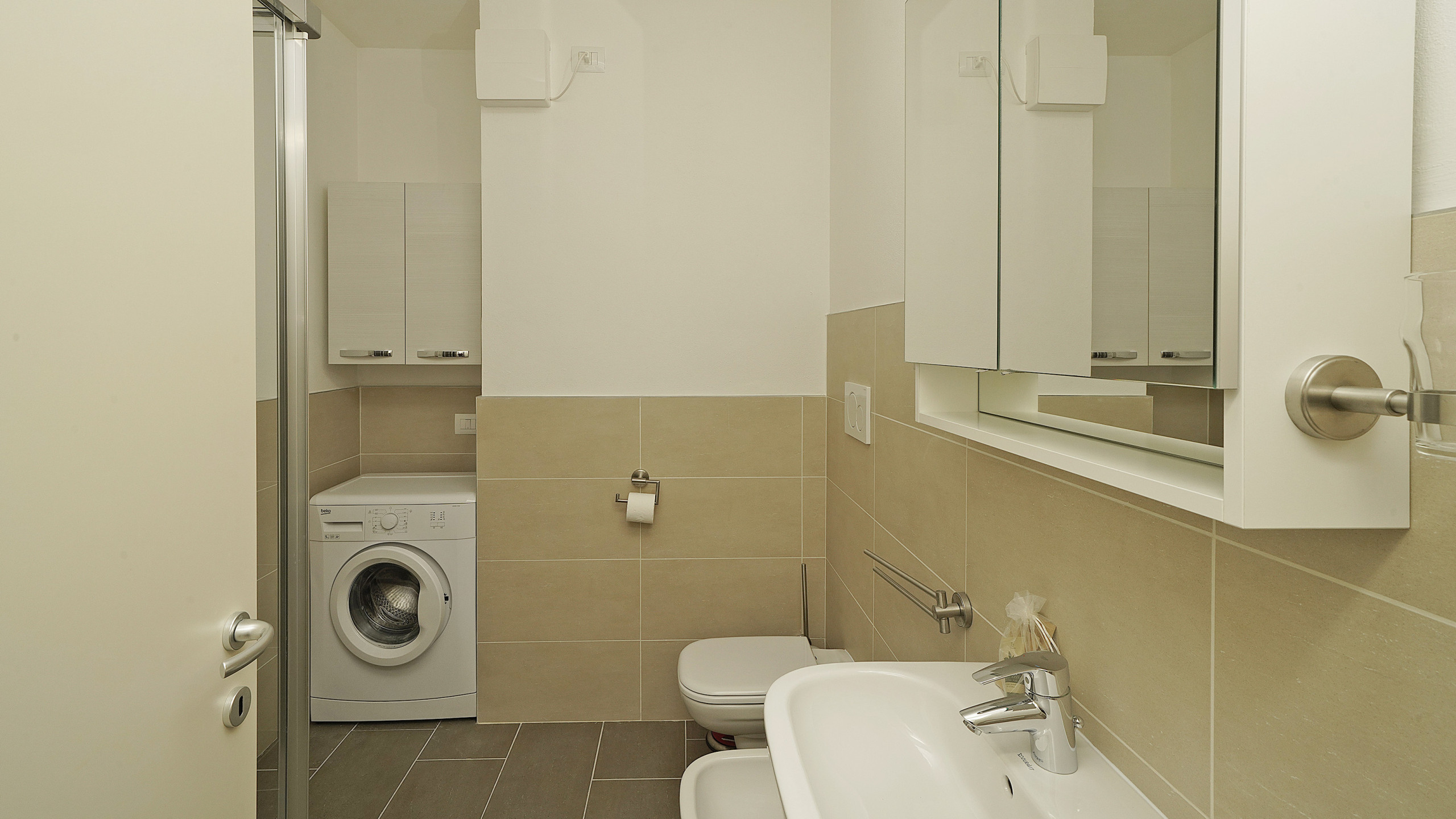 Il bagno privato con doccia garantisce comfort e privacy. L'appartamento è inoltre dotato di aria condizionata e riscaldamento centrale per assicurarvi il massimo comfort in ogni stagione.