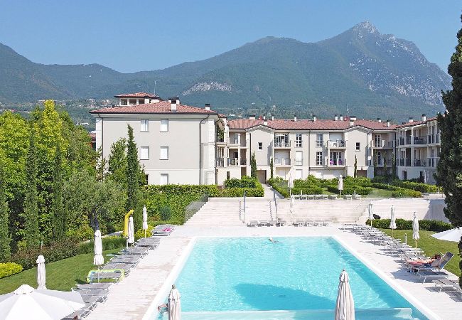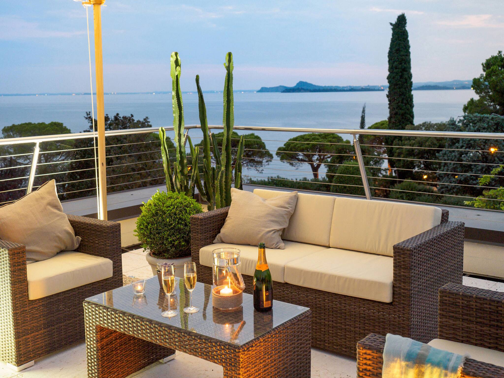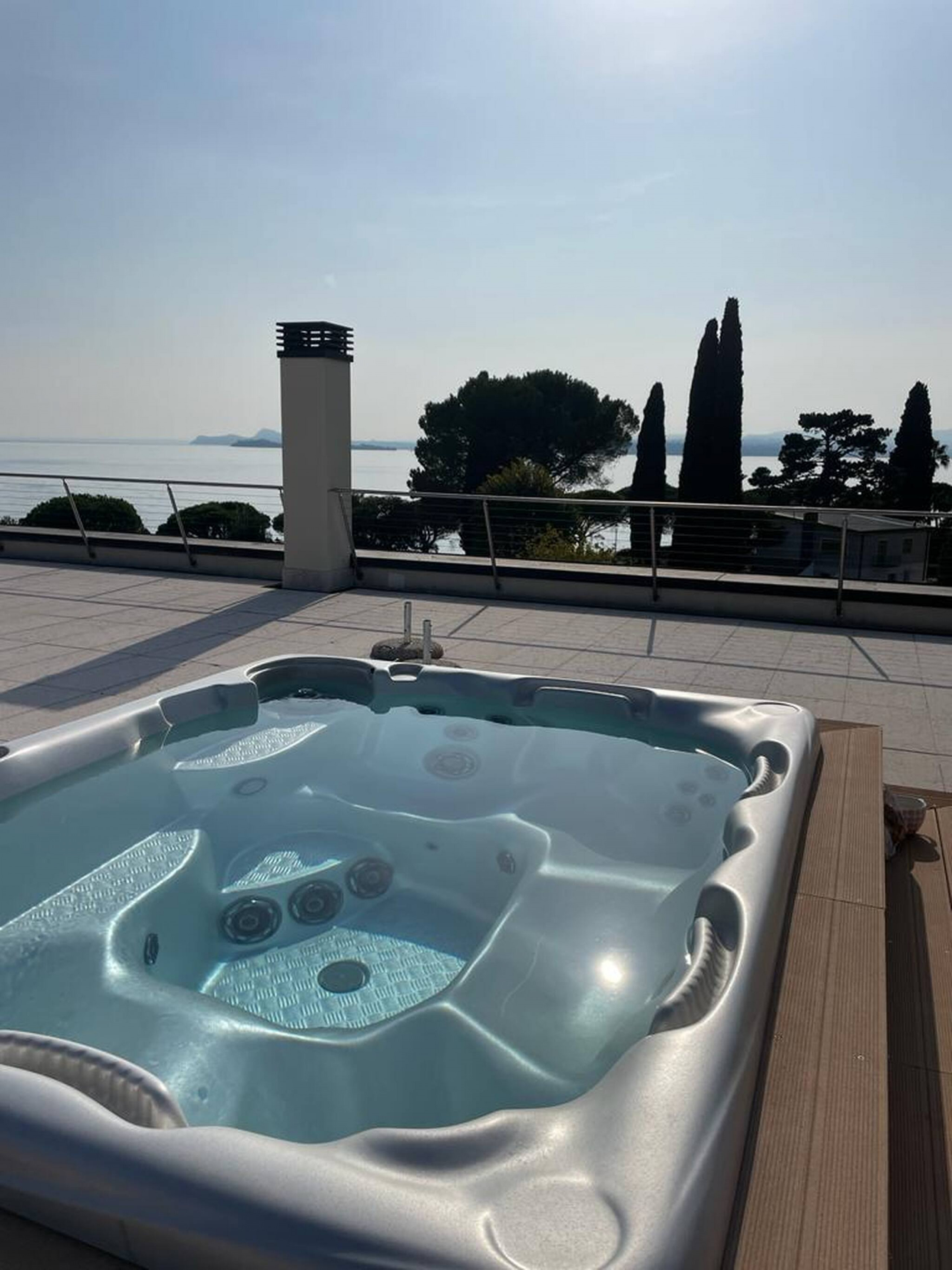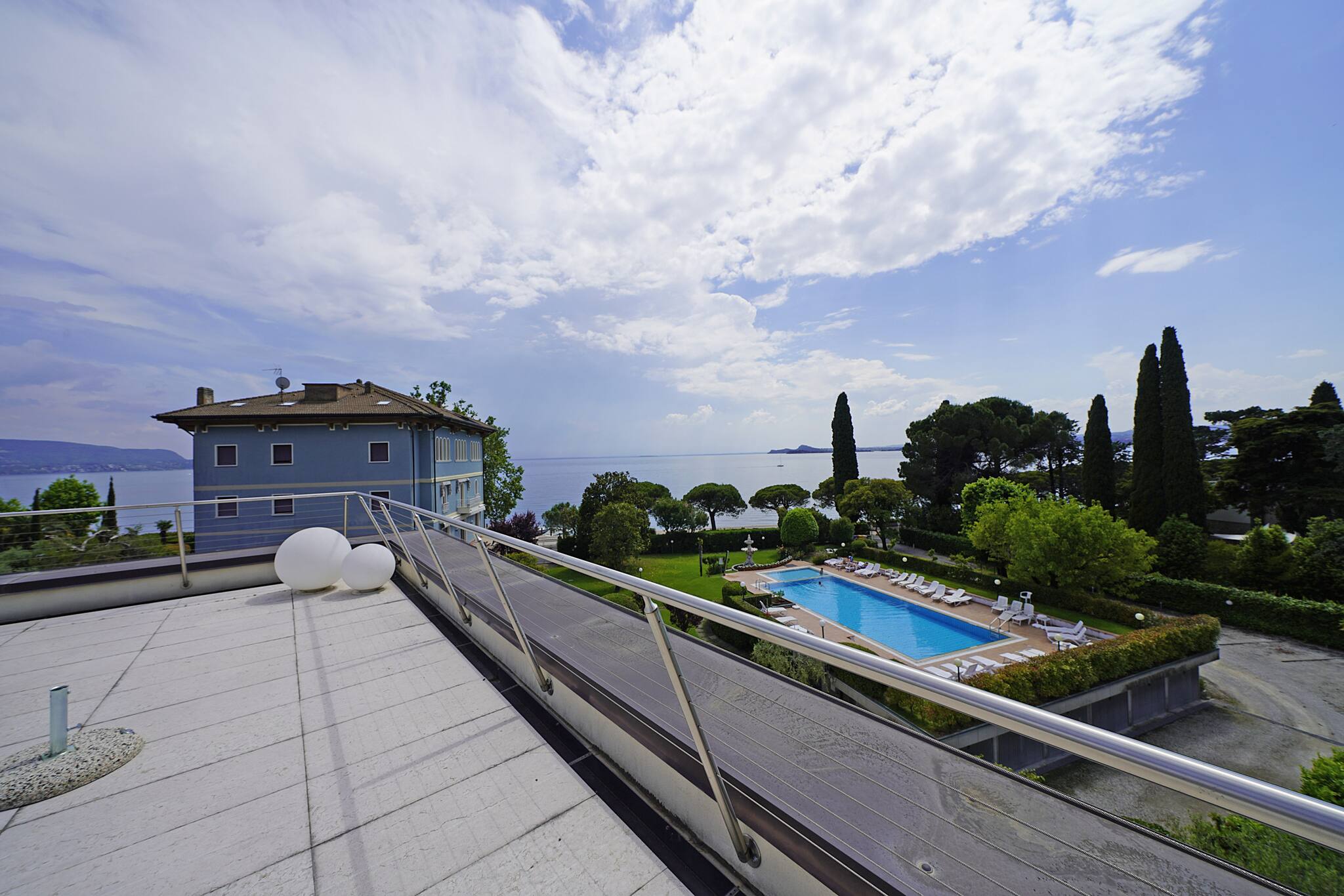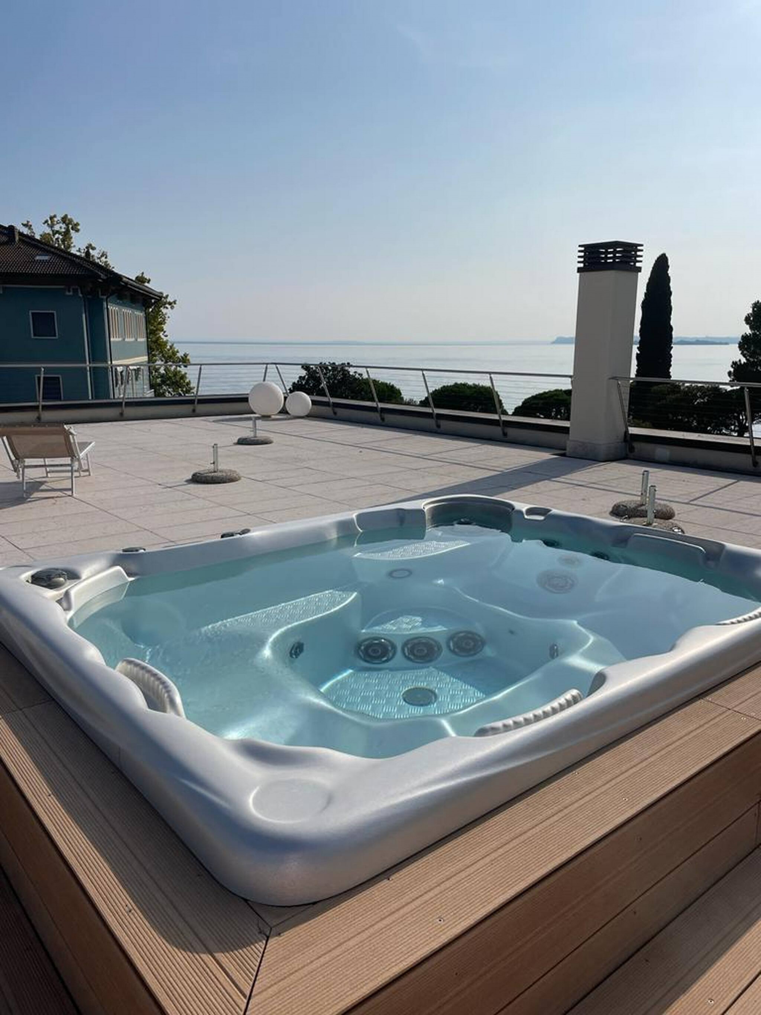 L'appartamento ha un soggiorno con divano letto estraibile, una camera da letto con comodo letto matrimoniale, una cucina aperta completamente attrezzata e un bagno con doccia. Godetevi ogni comfort nell'appartamento: balcone con vista sugli ulivi e in parte sul lago di Garda, aria condizionata e riscaldamento, ascensore, connessione internet/WLAN, TV, lavatrice, ferro/asse da stiro e asciugacapelli. La cucina aperta con piano cottura a induzione è dotata di frigorifero, microonde, forno, congelatore, lavastoviglie, stoviglie/posate, utensili da cucina, macchina da caffè, tostapane e bollitore. Per le vostre vacanze rilassanti avete accesso alla bellissima piscina con piscina per bambini, dove ci sono abbastanza sedie a sdraio per tutti gli ospiti. Il punto forte di questo appartamento è l'accesso alla grande terrazza sul tetto di ca. 500 mq, riservata esclusivamente a pochi appartamenti, con una magnifica vista a 360 gradi sul lago di Garda. Sulla terrazza è anche presente una vasca idromassaggio. Il complesso è a due passi dal lungolago. Potete parcheggiare la vostra auto nel garage sotterraneo privato. Nel garage accolgono macchine di normali dimensioni, i suv o macchine grosse non entrano. Supermercati, ristoranti, gelateria, banca, ufficio postale, ecc. sono raggiungibili a piedi.