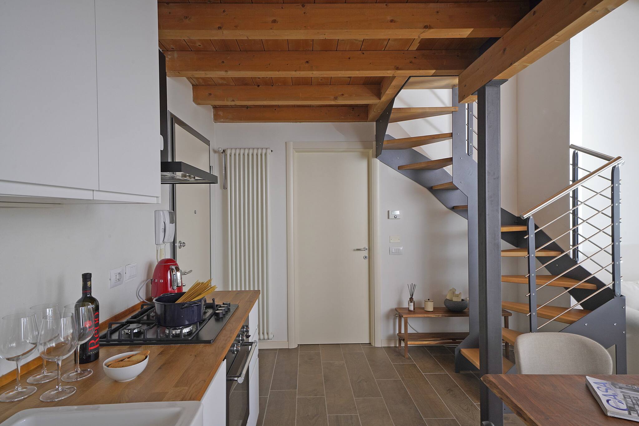 La cucina a induzione è completamente attrezzata con frigorifero con freezer, lavastoviglie, forno a microonde, macchina da caffè, bollitore, tostapane, stoviglie e pentole. La camera da letto matrimoniale è spaziosa e luminosa, con ampia portafinestra e un grande armadio. Il bagno è dotato di doccia, lavabo e bidet.