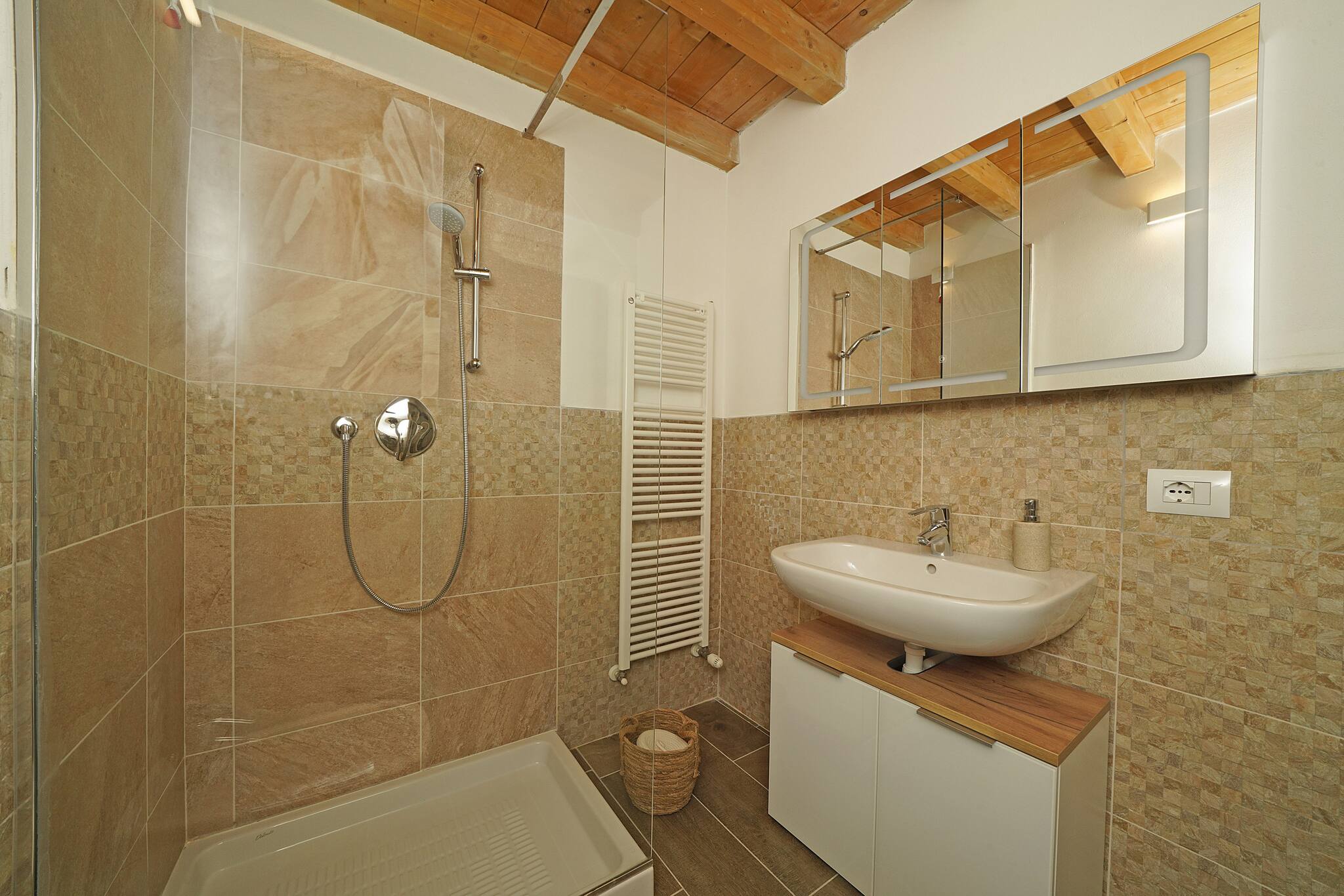Accogliente appartamento al primo piano servito da ascensore, ideale per coppie o piccole famiglie. Il soggiorno, luminoso e con vista sulle montagne, è arredato con un divano letto a una piazza e mezza e un tavolo da pranzo per quattro persone. Da qui si accede direttamente a un balconcino attrezzato con tavolino e sedie, perfetto per godersi momenti di relax all’aria aperta.