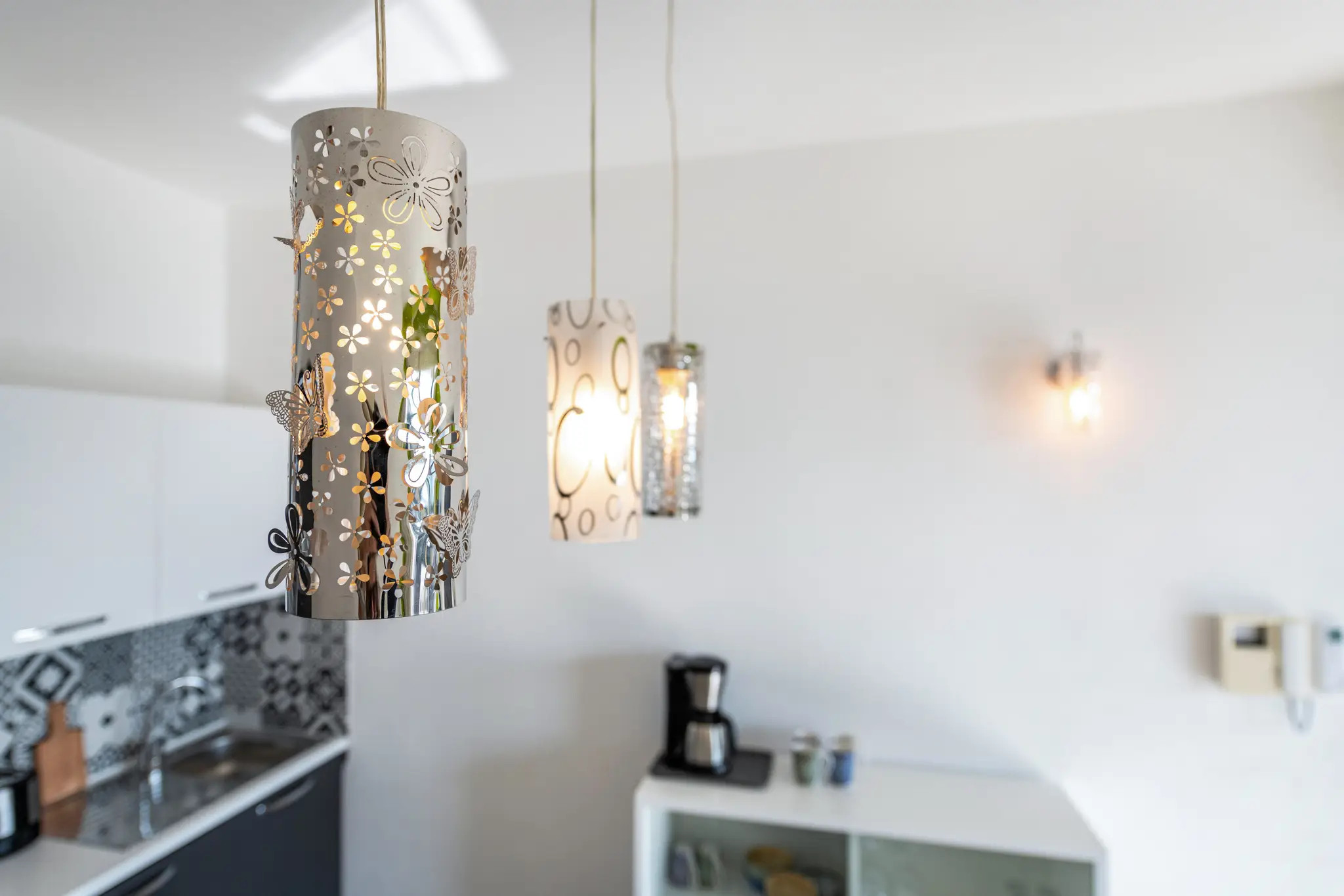 La zona giorno, luminosa e accogliente, si apre su una terrazza panoramica perfetta per iniziare la giornata con una colazione vista lago o per rilassarsi al tramonto. La cucina americana a gas è completamente attrezzata con frigorifero, forno, congelatore e lavastoviglie, oltre a macchina del caffè, tostapane, bollitore e tutti gli utensili necessari per sentirsi come a casa.