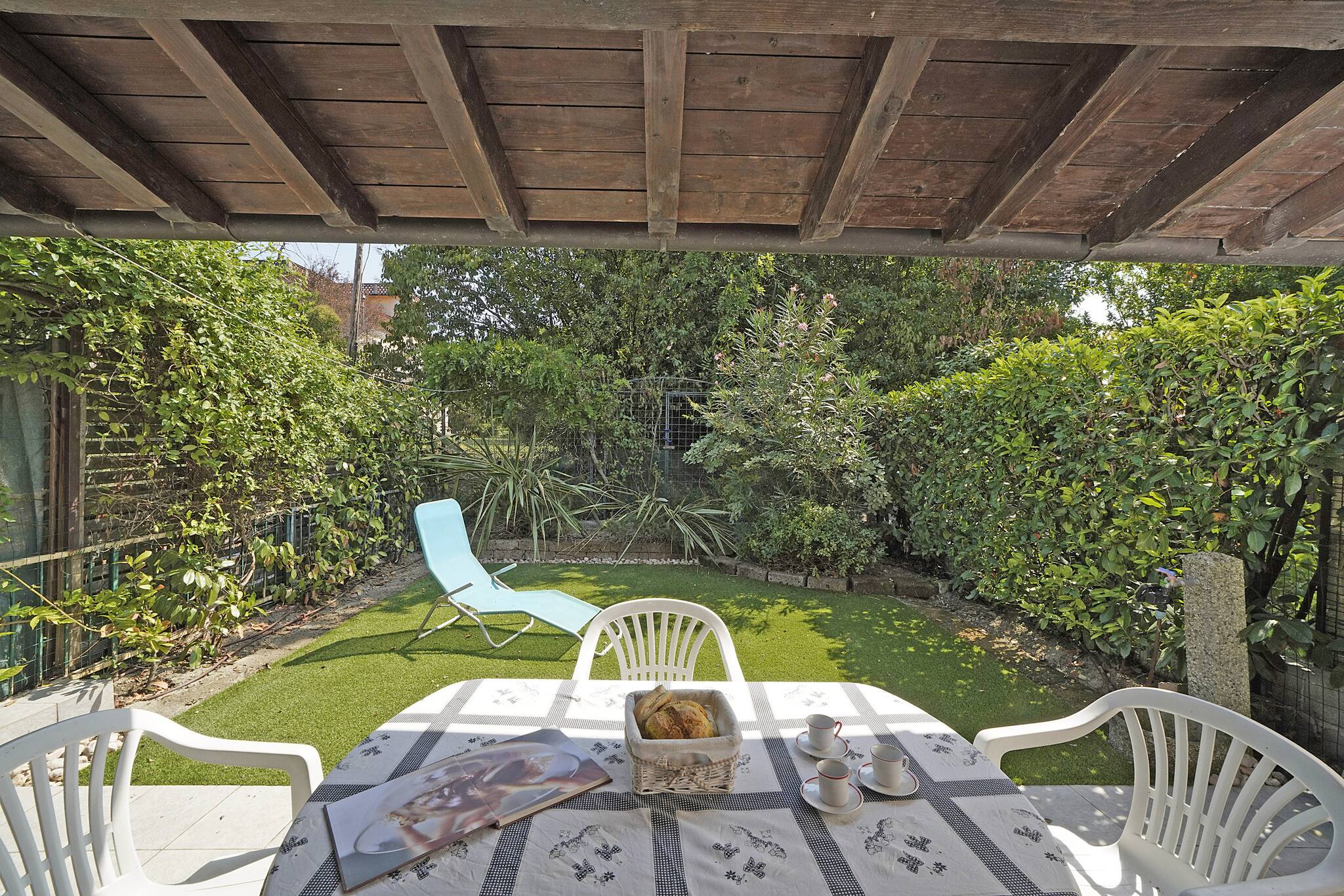 Deliziosa villetta a schiera in strada secondaria tranquilla. Accesso senza scale. Ampio soggiorno: divano e tavolo da pranzo. Cucina a gas completamente attrezzata: frigo con freezer, stoviglie e pentole, macchinetta caffè, forno, forno a microonde, tostapane. Camera da letto matrimoniale ampia con grande armadio e balcone; 2°camera da letto con 2 letti singoli (1 letto estraibile); 1 bagno: lavabo, bidet, doccia,lavatrice. Balcone vista giardino.