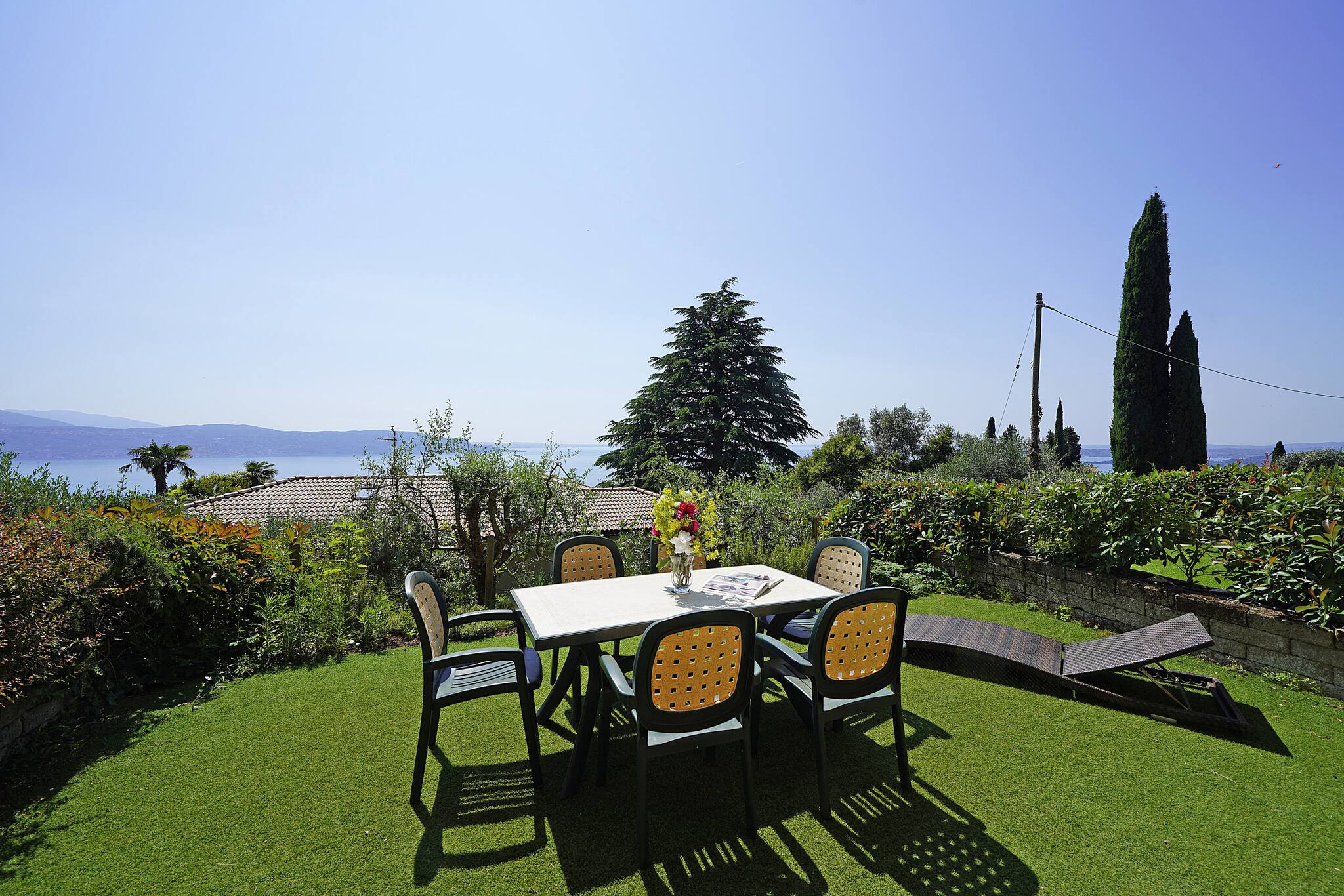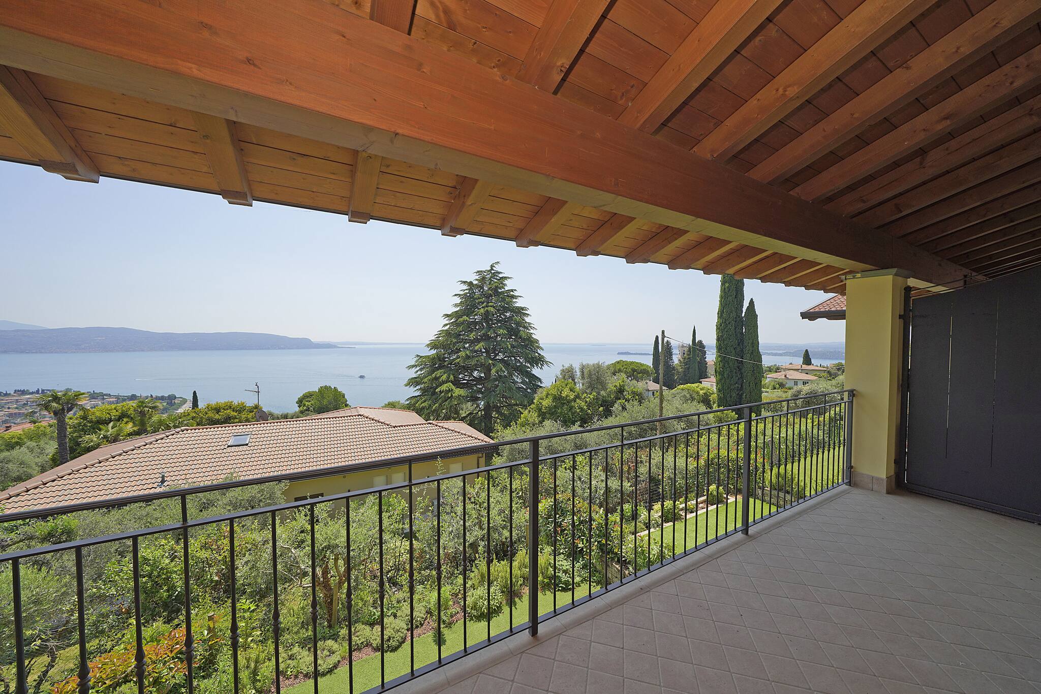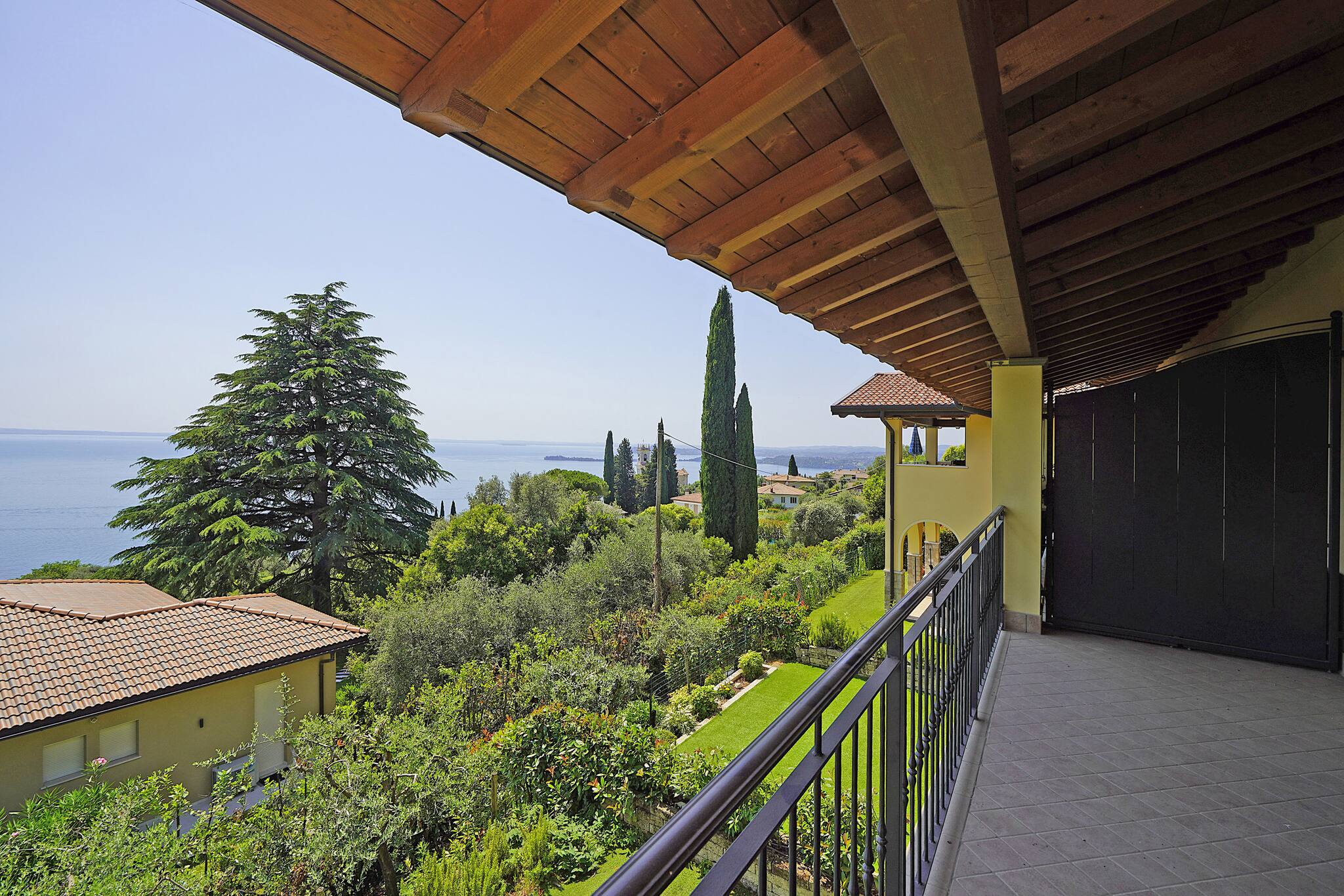 1° camera da letto: matrimoniale con armadio, ventilatore a soffitto, porta finestra che da sul balcone vista lago.2° camera da letto: letto alla francese con armadio, finestra vista giardino. No aria condizionata. Piscina vista lago in comune ad uso gratuito. Wifi: incluso . Garage 1 posto auto. Lavatrice in garage. Punto di forza: casa e piscina con vista lago.