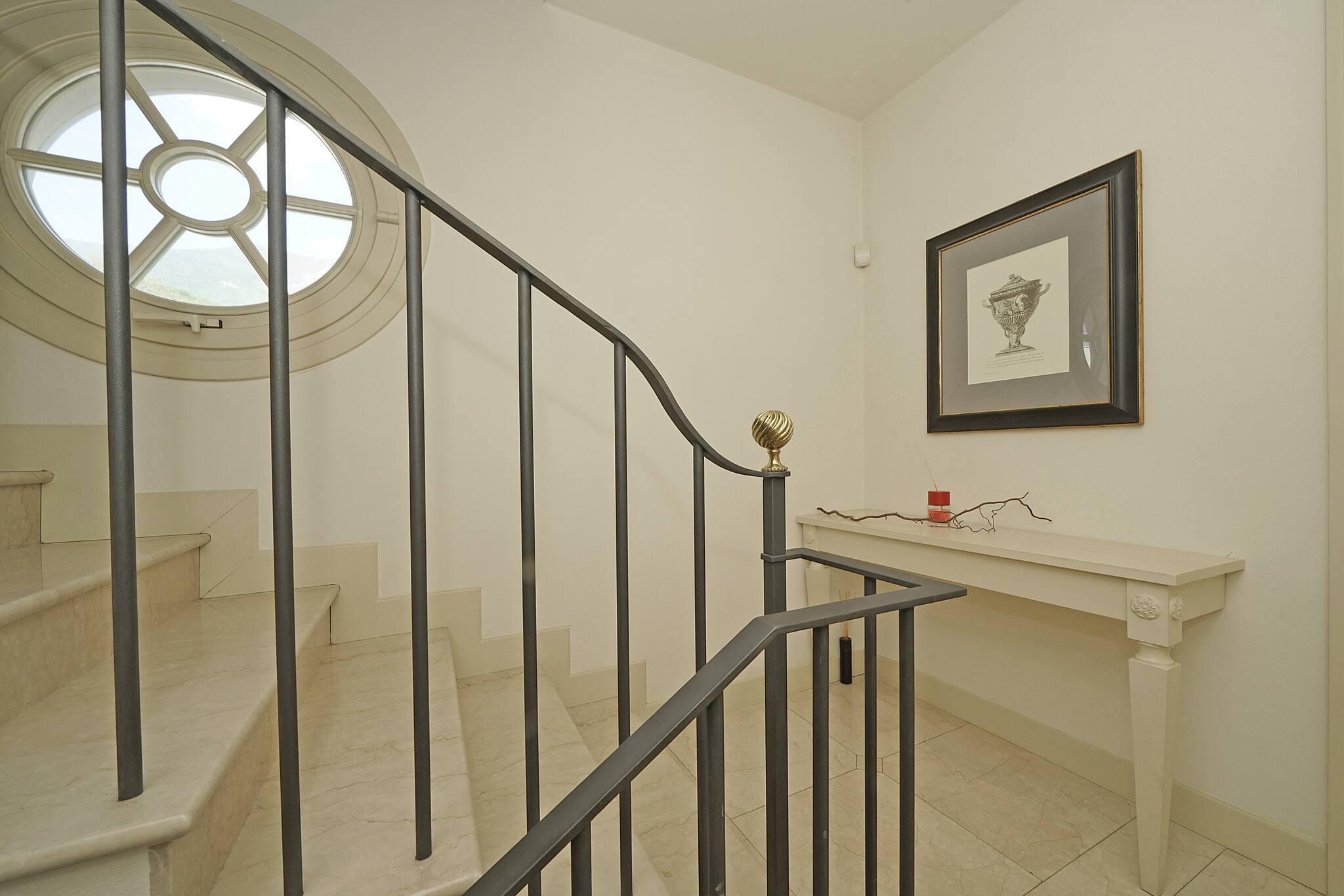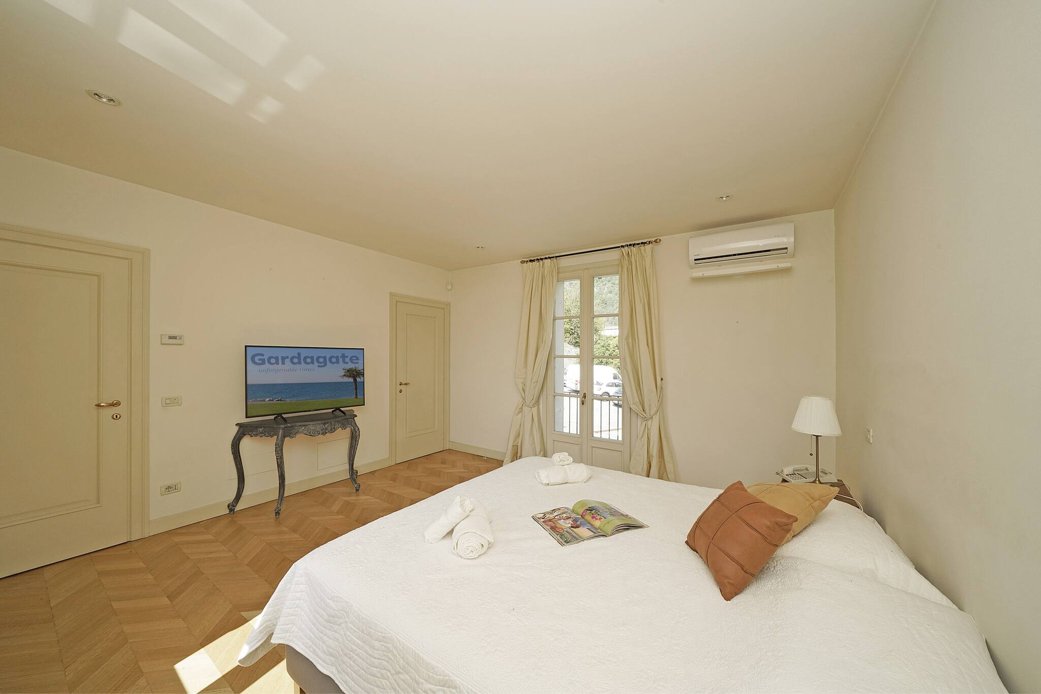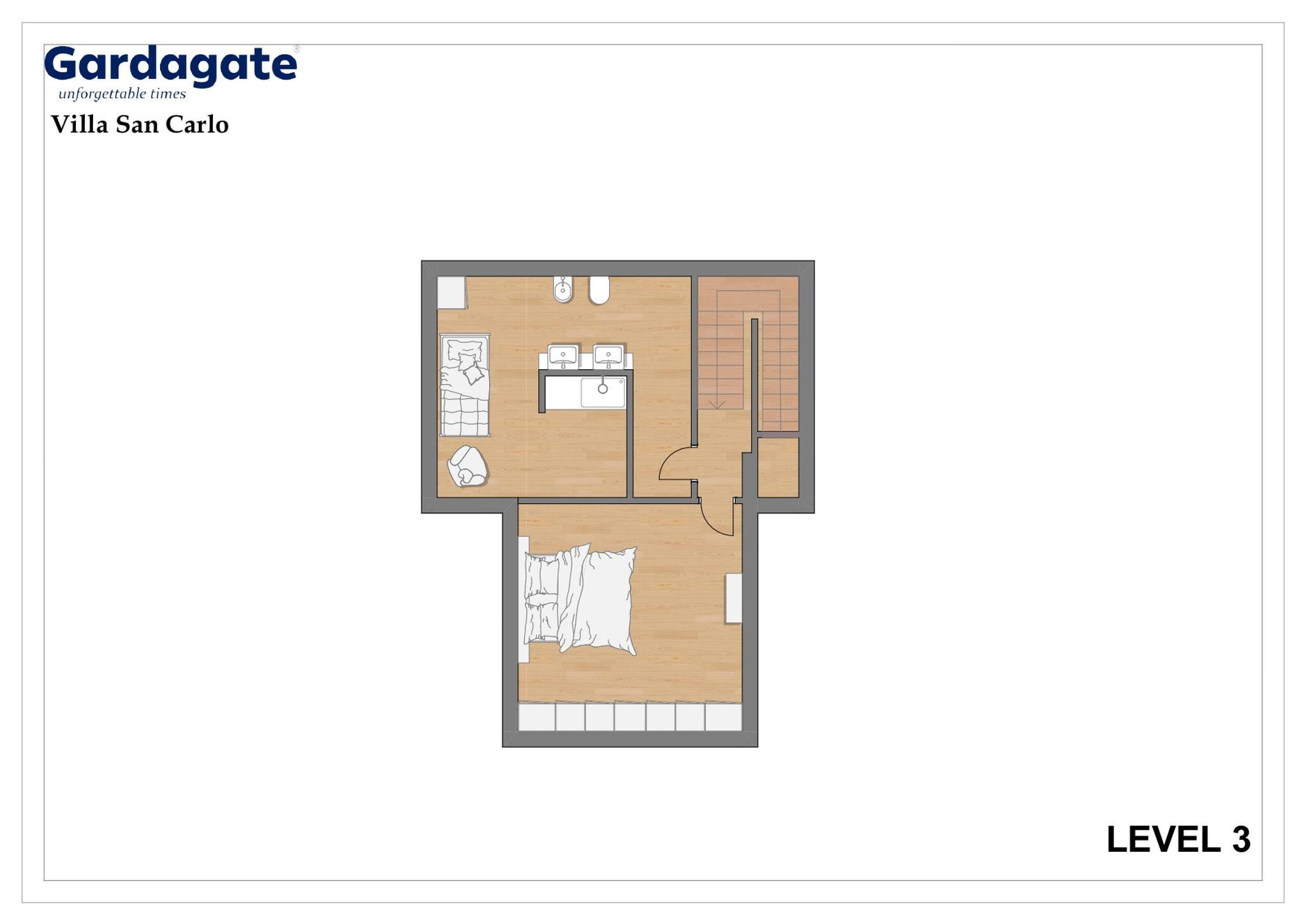 Villa disposta su tre livelli: piano d'accesso con atrio e porta finestra con balcone vista piscina e vista lago; salotto con 2 divani a due posti.Salendo le scale si trova: master bedroom con letto matrimoniale, aria condizionata,cabina armadio e bagno privato con doppio lavabo, wc,bidet e vasca idromassaggio; 2° camera con letto singolo e bagno con wc ,bidet e doccia tutto in un unico ambiente; 3°camera con divano letto doppio.