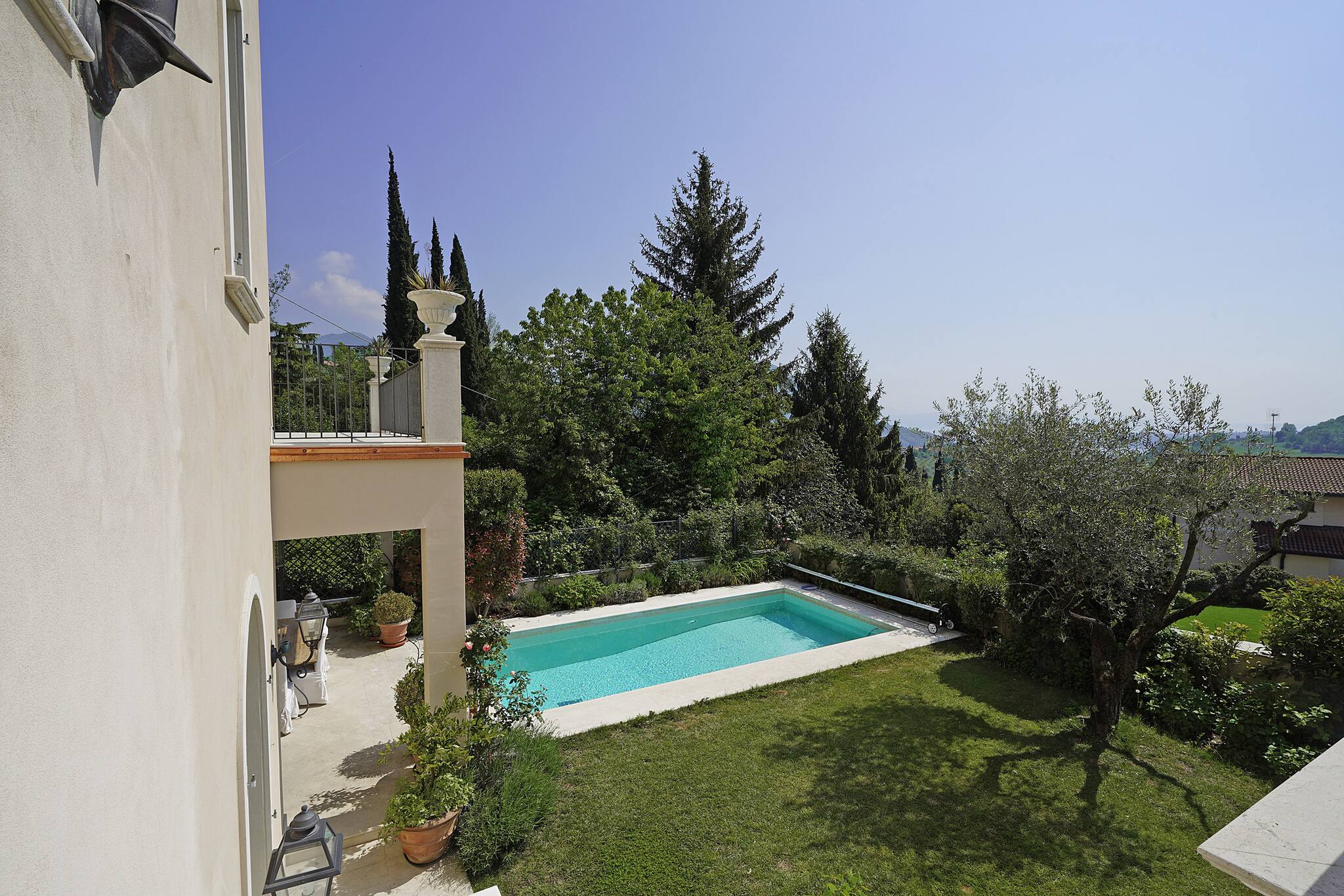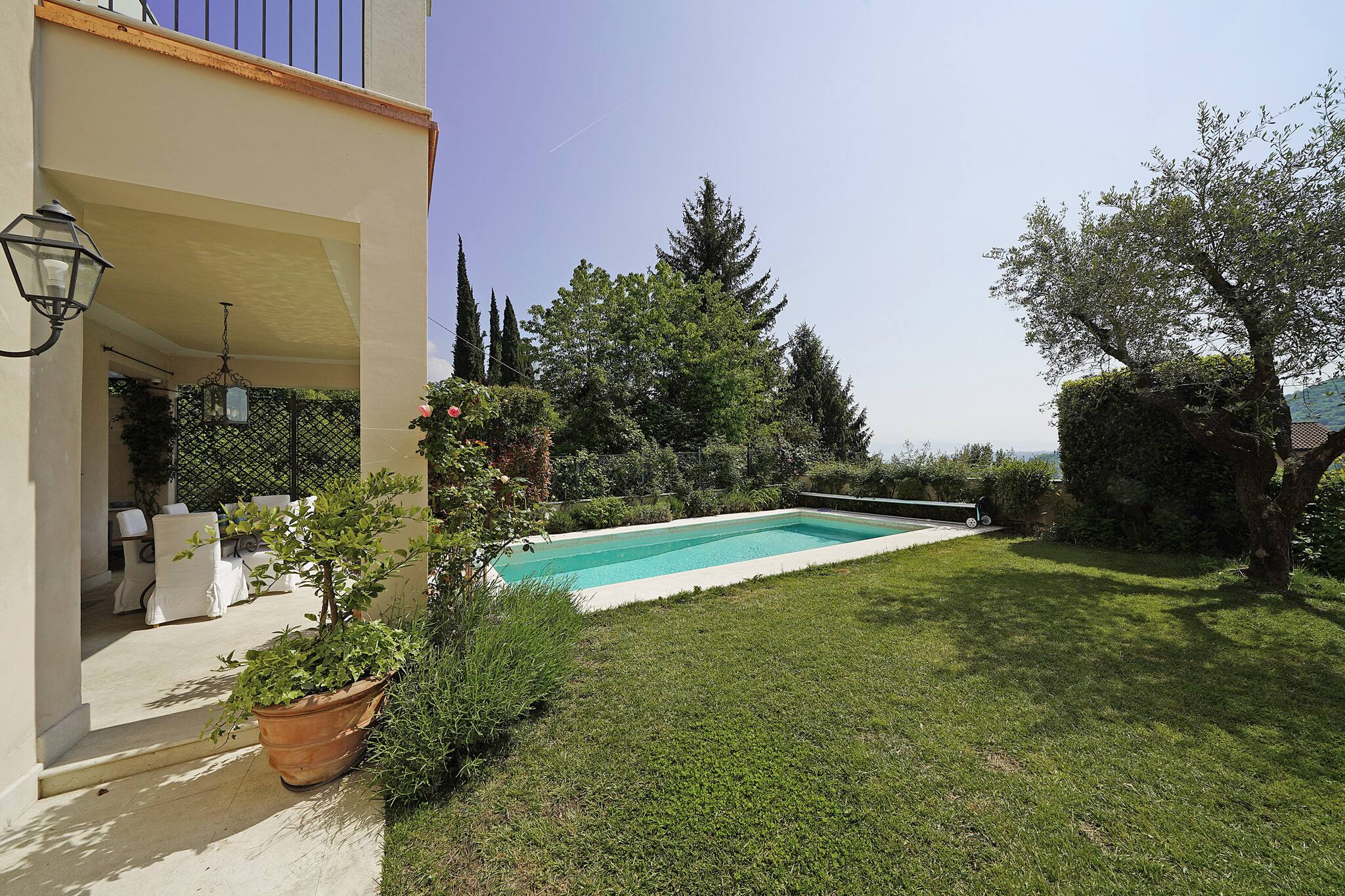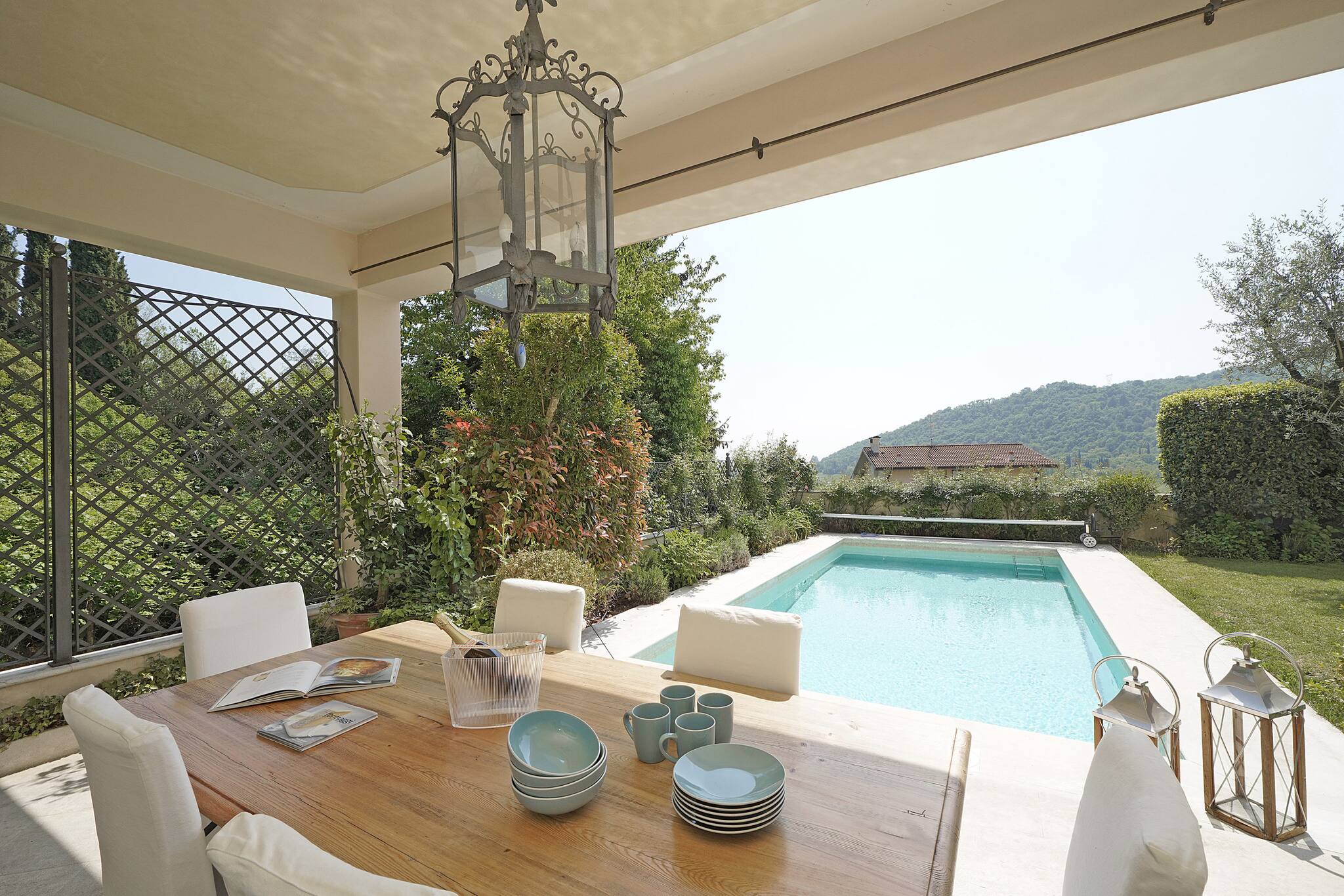 Villa disposta su tre livelli: piano d'accesso con atrio e porta finestra con balcone vista piscina e vista lago; salotto con 2 divani a due posti.Salendo le scale si trova: master bedroom con letto matrimoniale, aria condizionata,cabina armadio e bagno privato con doppio lavabo, wc,bidet e vasca idromassaggio; 2° camera con letto singolo e bagno con wc ,bidet e doccia tutto in un unico ambiente; 3°camera con divano letto doppio.