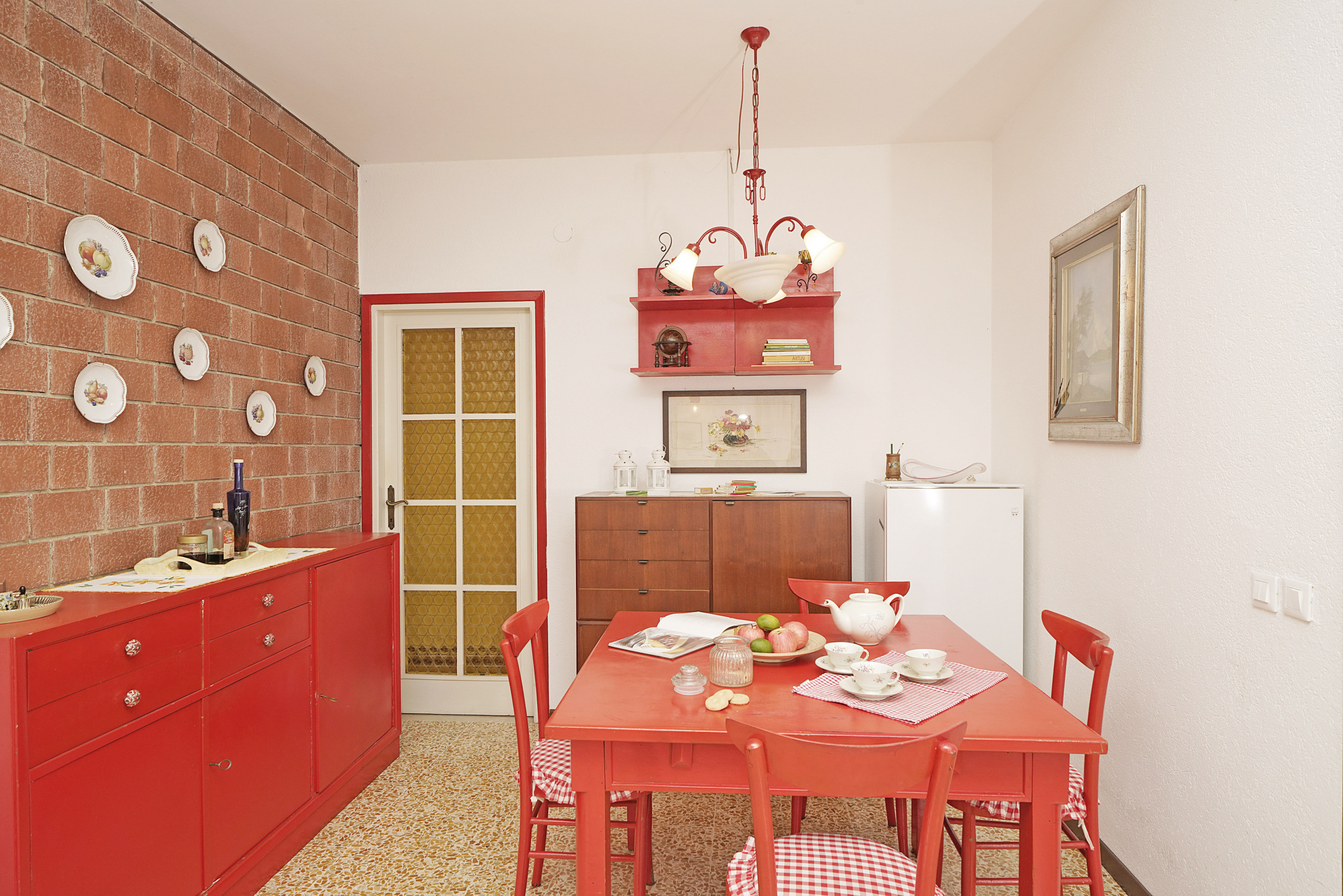 Die Küche ist ausgestattet in einen Kühlschrank, ein Backofen, Gefrierschrank und einen Wasserkocher.