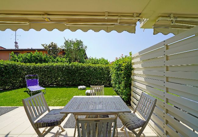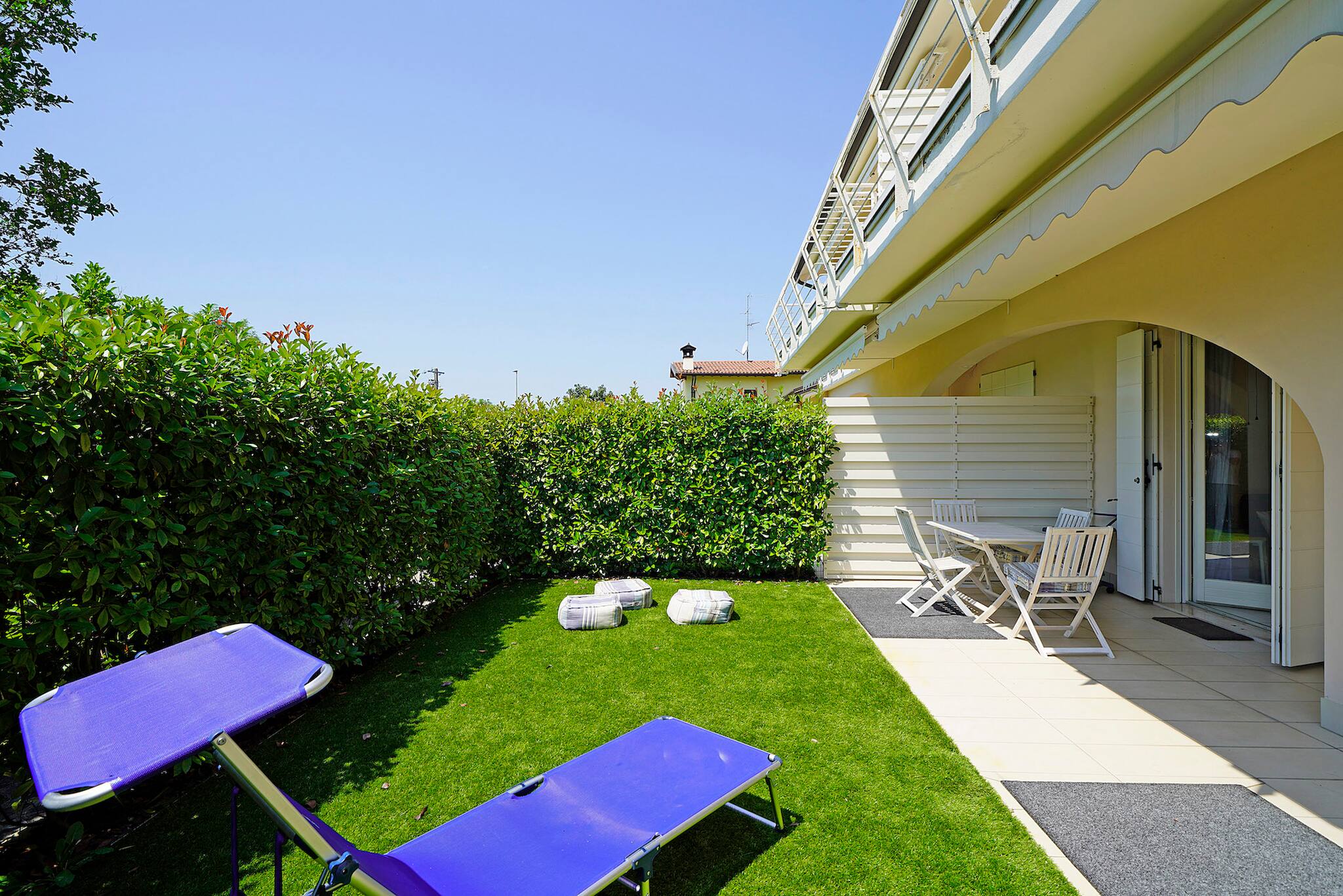 Ground floor apartment. Living room with garden view: sofa bed 1 and dining table for 4. Direct access to the garden equipped with table and chairs. Induction kitchen : refrigerator with freezer, dishes and cookware, dishwasher,microwave oven, coffee maker, kettle, toaster. 1 bathroom: washbasin, bidet, shower. 1 bedroom: double with French door and large closet . YES air conditioning in living room. NO washing machine. Wifi: included . Private garage 1 parking space.