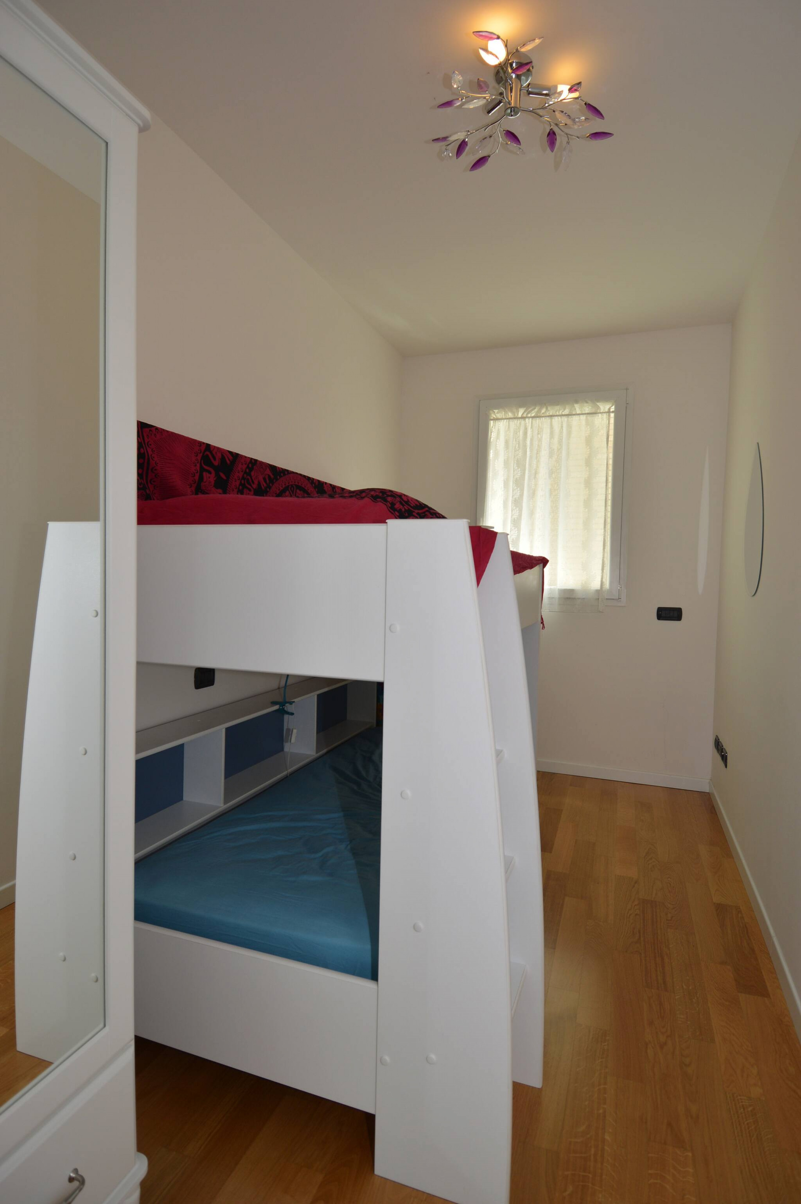Next to the living room you can access the double bedroom with a large French window that communicates with the private balcony. Next to the room, there is access to the windowed bathroom equipped with shower, toilet, bidet and washing machine.