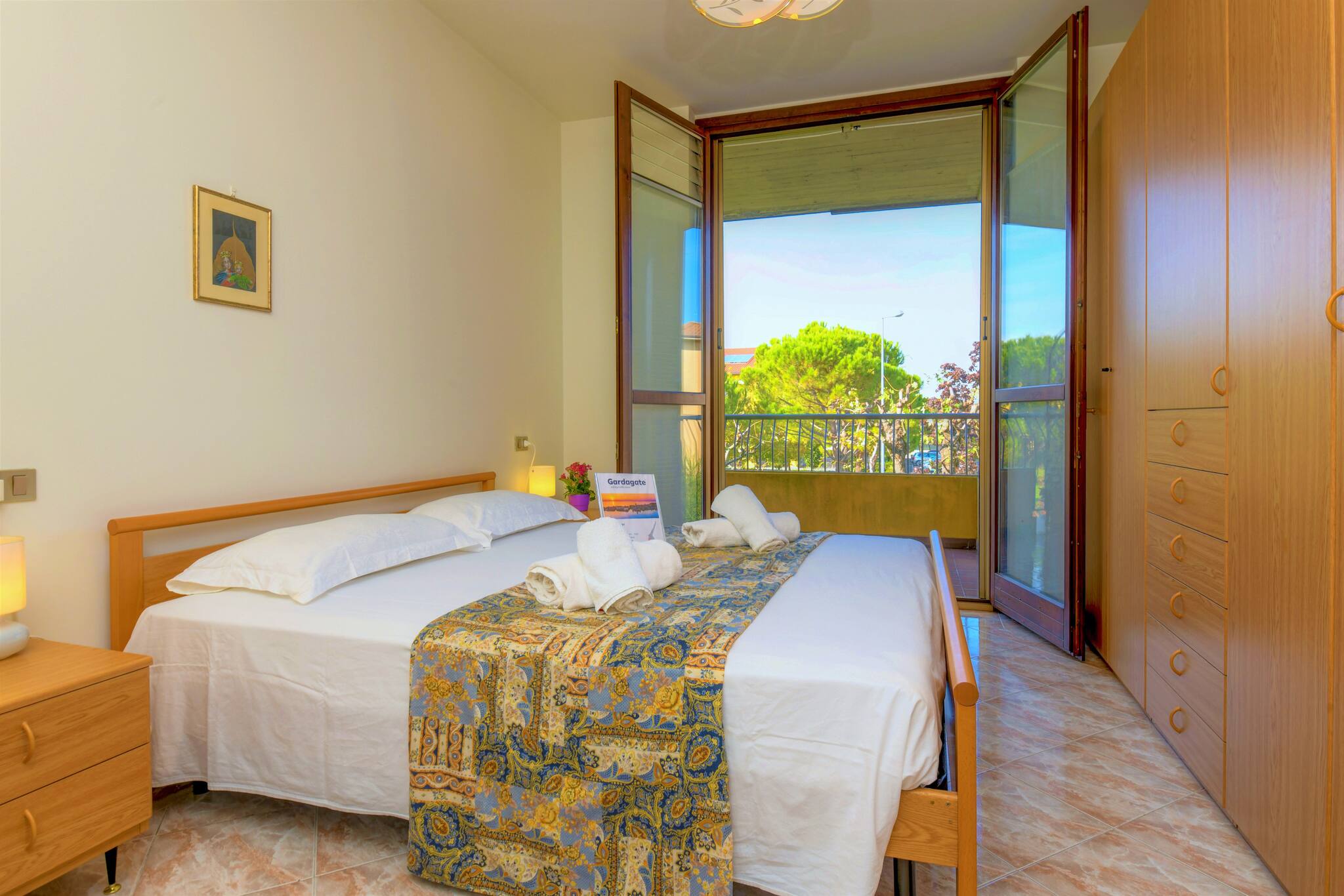 Next to the living room you can access the double bedroom with a large French window that communicates with the private balcony. Next to the room, there is access to the windowed bathroom equipped with shower, toilet, bidet and washing machine.