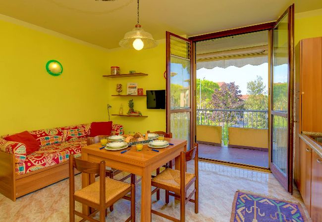 Ground floor apartment. Living room with garden view: sofa bed 1 and dining table for 4. Direct access to the garden equipped with table and chairs. Induction kitchen : refrigerator with freezer, dishes and cookware, dishwasher,microwave oven, coffee maker, kettle, toaster. 1 bathroom: washbasin, bidet, shower. 1 bedroom: double with French door and large closet . YES air conditioning in living room. NO washing machine. Wifi: included . Private garage 1 parking space.