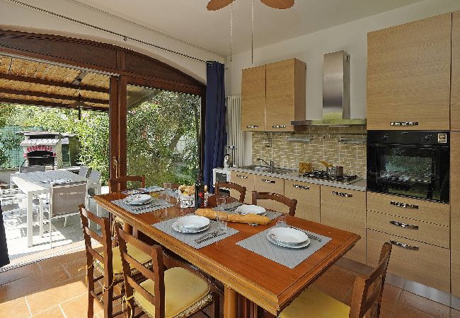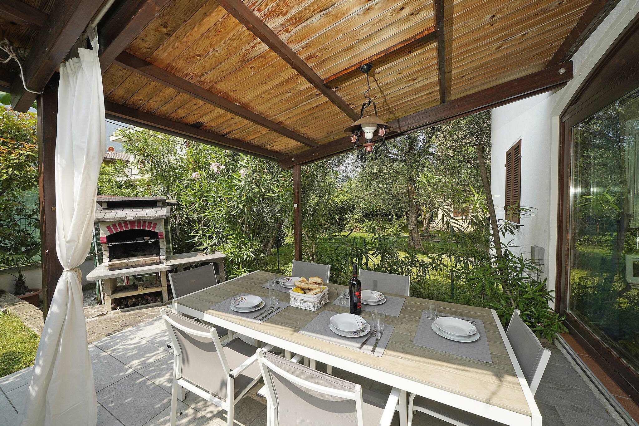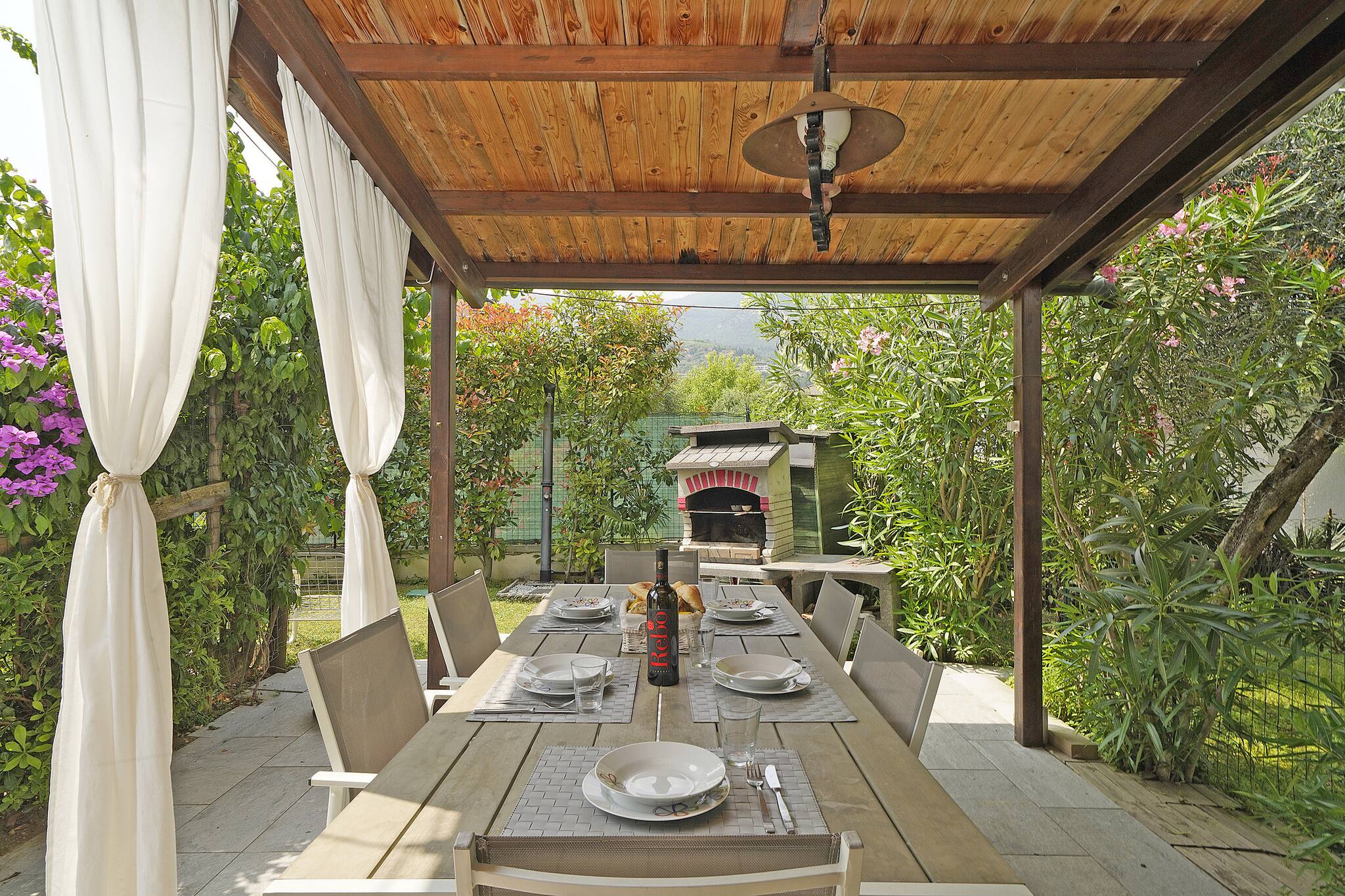 Die elegante und komfortable Wohnung bietet Platz für bis zu 5 Personen und ist mit allem Komfort ausgestattet: Klimaanlage für heiße Sommertage, schnelles WLAN, um in Verbindung zu bleiben, und eine private Garage für Ihr Auto. Der Garten, das wahre Herz des Hauses, lädt Sie ein, angenehme Momente im Freien zu verbringen – vielleicht bei einem Barbecue, während die Sonne hinter den Hügeln untergeht.