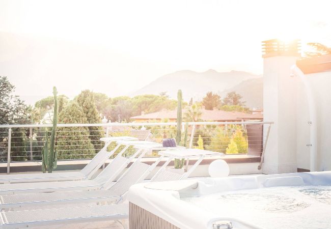 Die Unterkunft verfügt über einen Aufzug, einen Garten, Gartenmöbel, eine Waschmaschine, ein Bügeleisen/-brett, ein Internetanschluss (WLAN), ein Föhn, ein Whirlpool, eine Zentralheizung, eine Klimaanlage, einen Gemeinschaftspool, eine Garage auf dem Grundstück, 1 Fernseher.