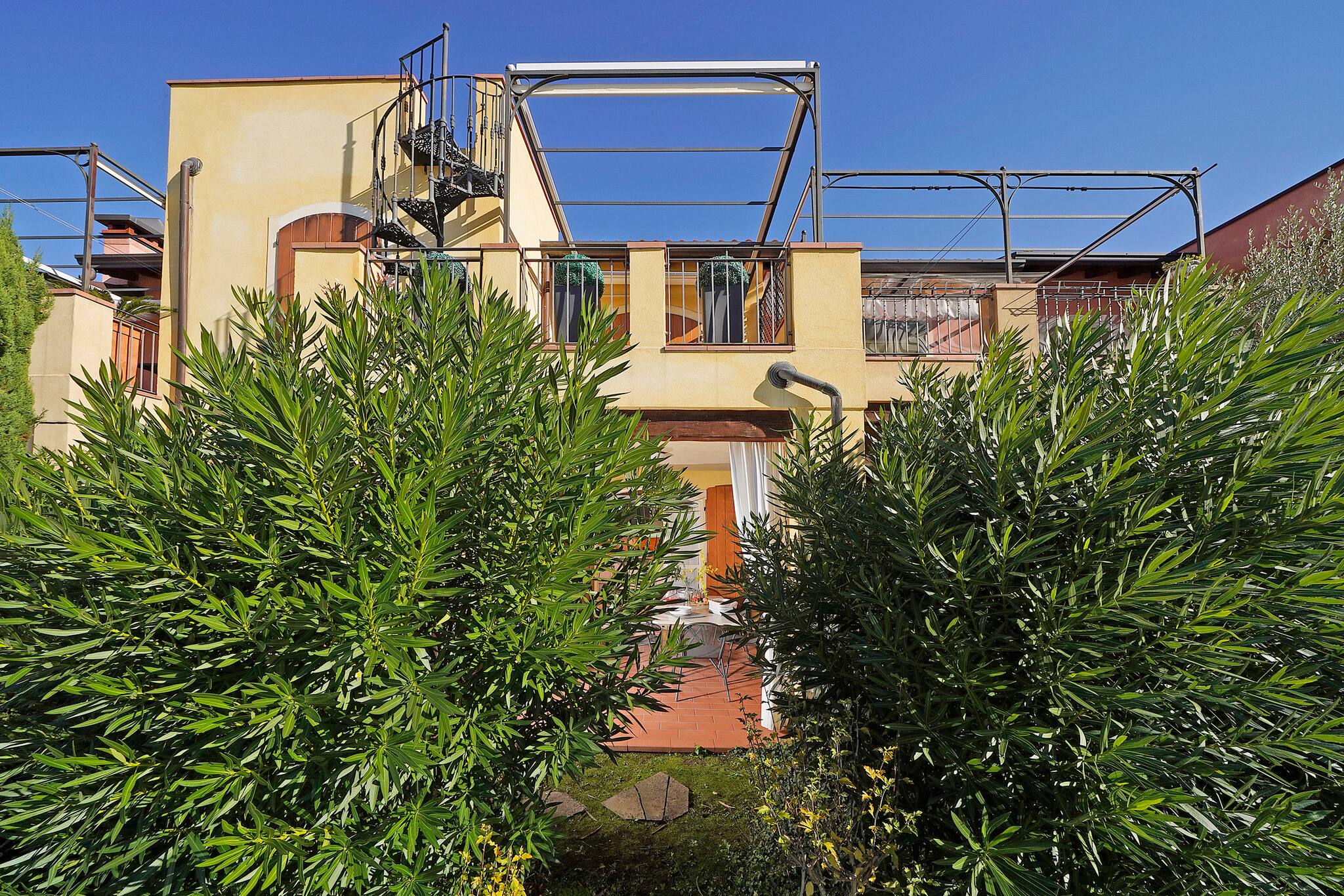 From the entrance you will immediately access the living room with kitchen and high peninsula where you can eat; in front of it , you will find the double sofa bed positioned at the large French window overlooking the lovely porch with small private garden where you can enjoy the summer breeze sipping a good drink. The living room leads to the elegant double bedroom and to the bathroom equipped with washbasin, toilet, bidet, shower and washing machine. Large free swimming available pool for guests. Outdoor parking is available near the property.. City Tax: € 1,60 per person per night to pay at check-in