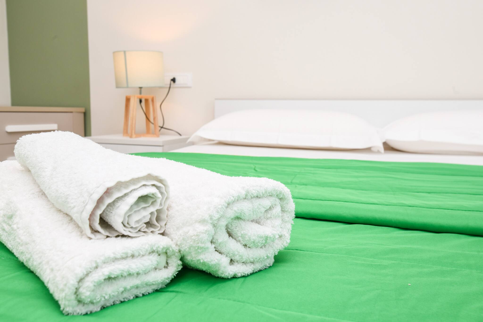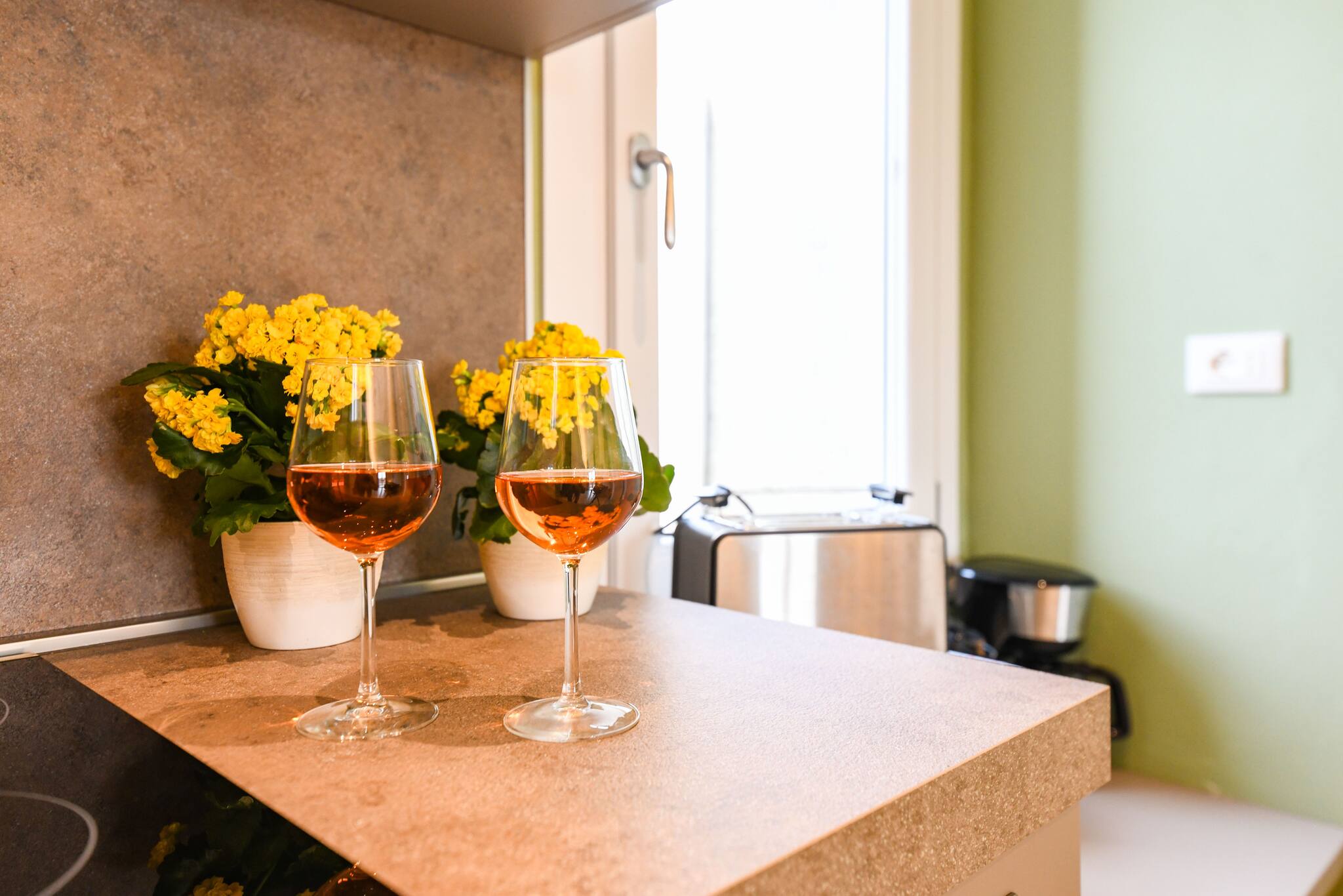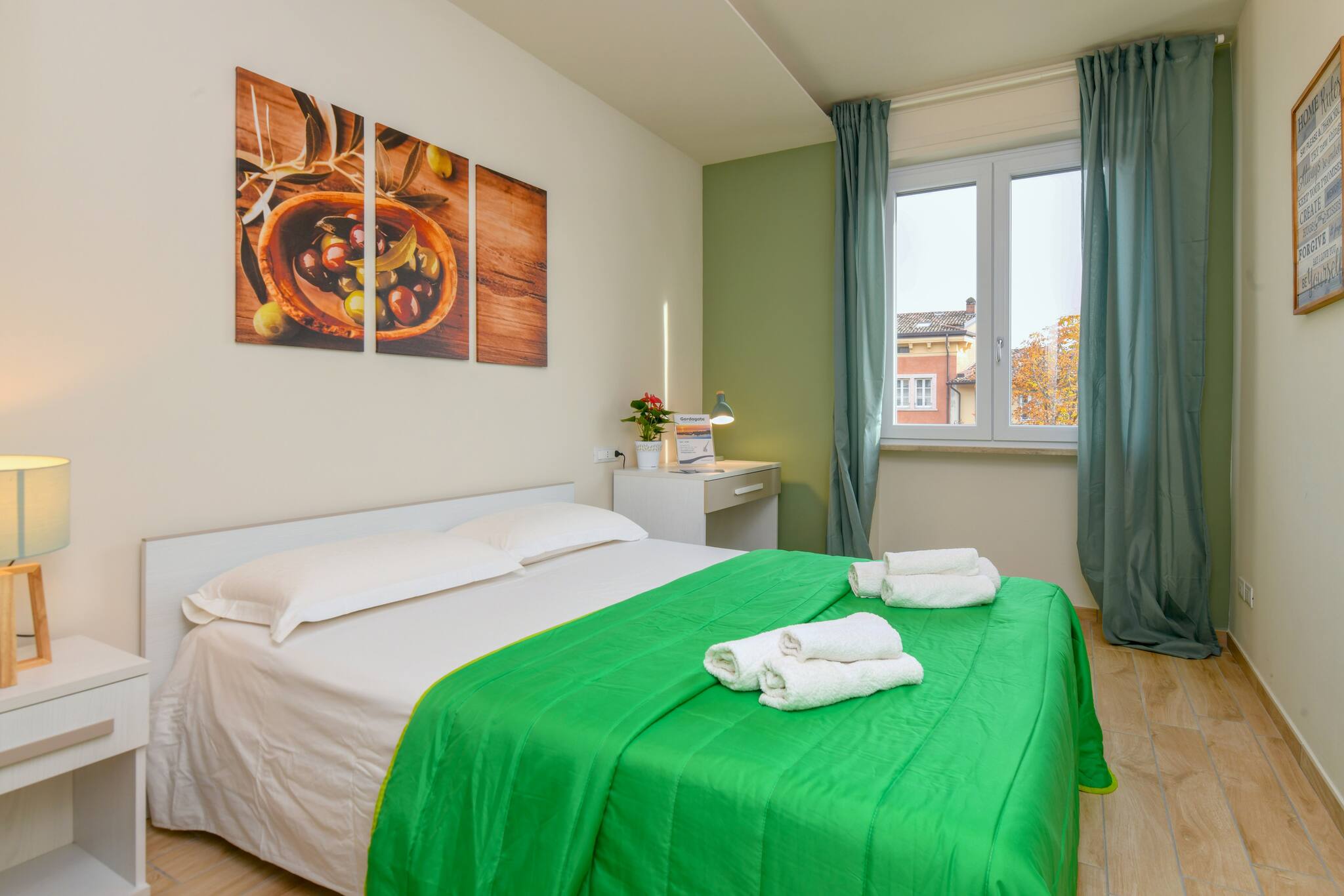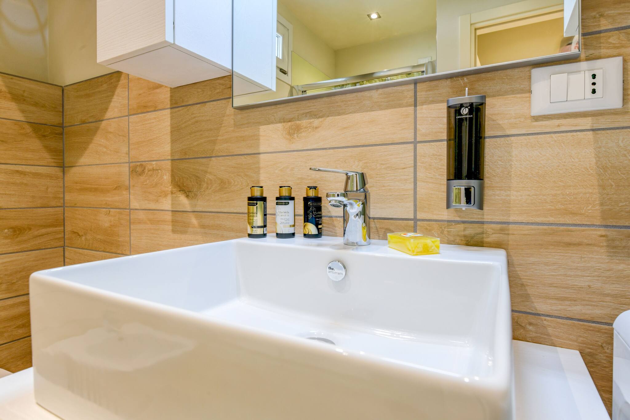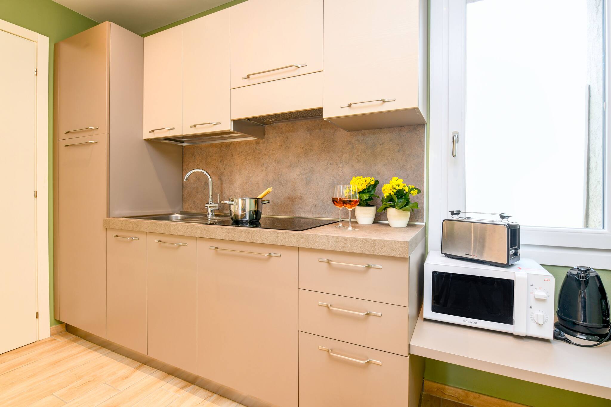 The flat, with Wi-Fi internet connection included, is located on the second floor and welcomes guests with a spacious and bright living room equipped with a double sofa bed, dining table and chairs, flat screen TV with international SAT channels, fully equipped kitchen with stove, fridge, freezer, microwave, dishwasher, electric kettle, coffee maker, citrus juicer and toaster. The living room overlooks the flat's private balcony.