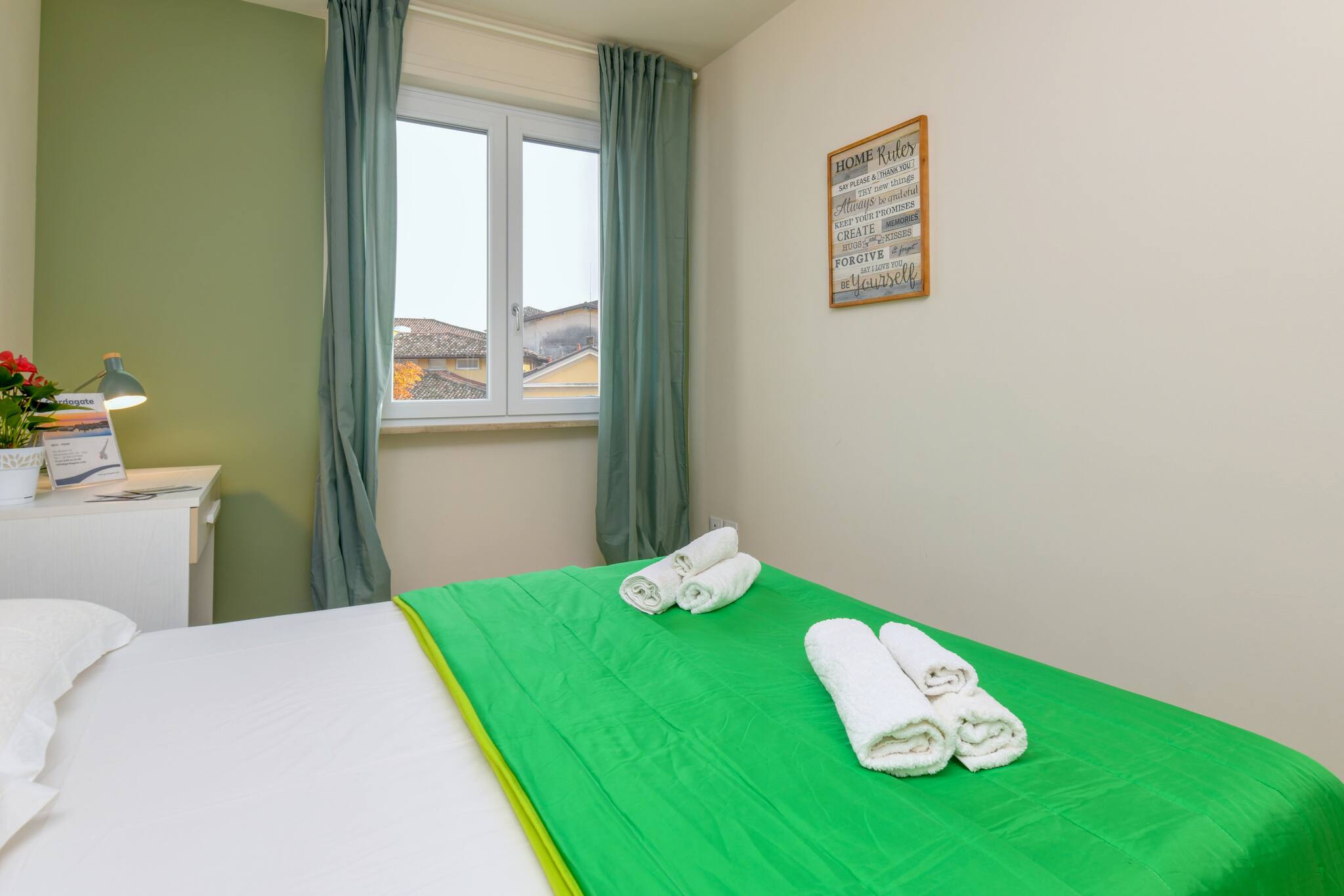 The flat is air-conditioned in all rooms and continues with the bedroom, which has a comfortable double bed, desk and wardrobe. The bathroom is complete with shower, washbasin, WC, bidet and washing machine. Guests can park their car for free in the flat's private garage. At a small extra cost, a cot and a baby seat can be provided. Pets are not allowed. The flat, due to its good quality finishes and accessories, guarantees comfort to guests on holiday on Lake Garda; within walking distance you can easily reach the main squares of Salò, the lake, restaurants, bars, cafes and the harbour. From the flat it is easy to reach the golf course "Il Colombaro", the amusement parks Gardaland and Caneva World (45 minutes), the harbour for renting boats and for sightseeing tours of the lake by boat visiting the towns of Bardolino, Lazise, Garda, Limone, Desenzano and Sirmione. The historic city of Verona is 50 minutes away by car or 30 minutes by train from Desenzano train station. The cities of Venice and Milan are also easily accessible by road or rail. Lake Garda also offers boat rentals, cycling in the hills, rock climbing, golf, wine and local produce tasting and various excursions. The nearest airport is Verona, only 50 minutes away by car.. City Tax: € 1,50 per person per night to pay at check-in starting from 1 nights for a maximum of 30 nights