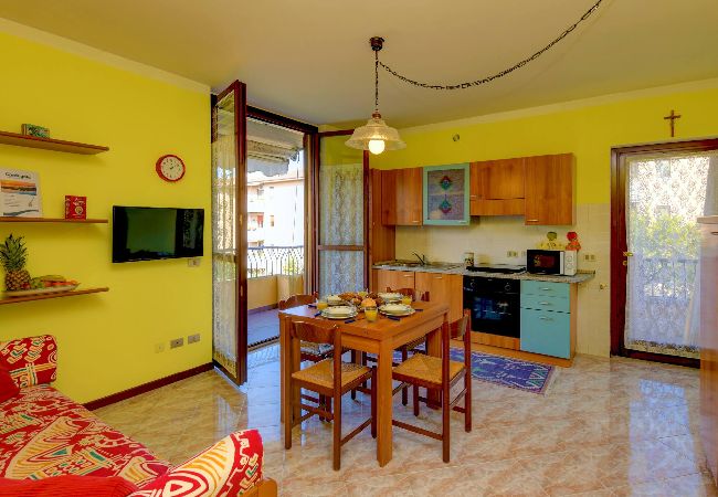 Flat on the outskirts of the historic centre of Sirmione. in a well-kept, spacious residence with private access to the lake. First floor accessible by stairs. Living room: double sofa bed, TV and dining table. Fully equipped electric kitchen with oven, fridge with freezer, crockery and cookware, Italian moka, dishwasher. Small balcony with lake view. Air conditioning. 1 bathroom: washbasin, bidet, shower. 1 large bedroom: double bed with wardrobe. Media: tv Wifi: included .