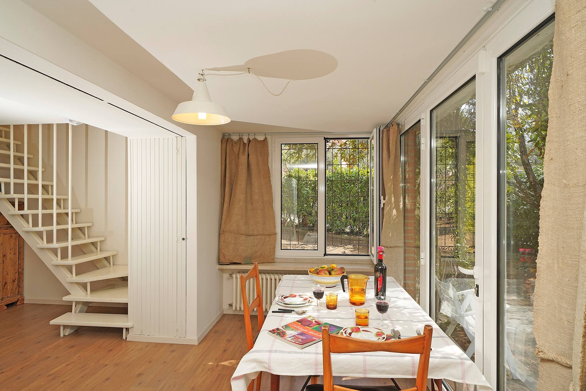 Surrounded by a large garden, from the entrance on the ground floor you will directly access the fully equipped kitchen and the dining room, areas made bright by the windows and French windows that characterize the environment. Continuing on you enter the large living room with two comfortable sofas, the airy double bedroom and the adjacent bathroom, equipped with toilet, bidet, sink and large shower. The house has been decorated in a Scandinavian style with rustic notes, which makes the environment light and welcoming. The garden is for the exclusive use of guests; here you can enjoy the sun, and have lunch or dinner enjoying the beautiful lake climate. The house, although secluded, is located near the most beautiful beaches of Manerba, the promenade lined with bars and restaurants and only 1 km from the historic center. Free uncovered parking on the property.