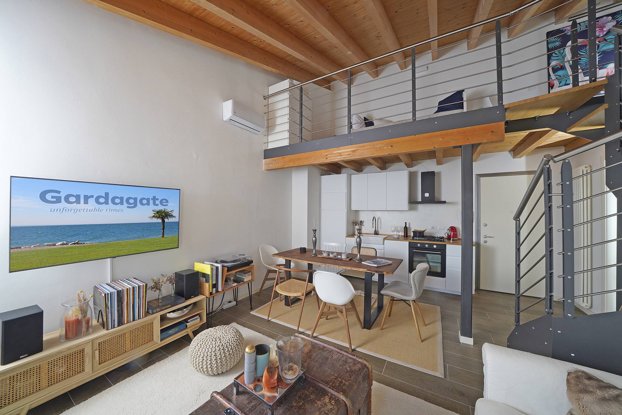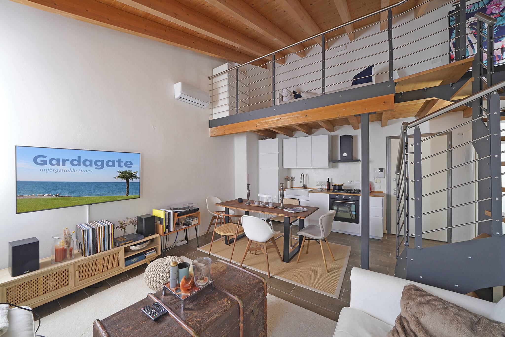 Located just a few steps from the shores of Lake Garda, this elegant apartment in Toscolano Maderno offers a spectacular view of the lake and surrounding mountains. It's the ideal place for those seeking relaxation surrounded by nature, without giving up comfort and convenience.