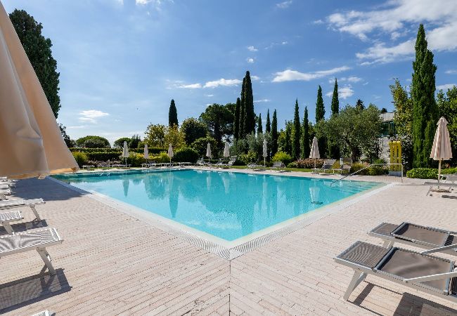 Guests have access to a private garage with one parking space (not suitable for large SUVs). An elegant shared swimming pool is available free of charge, with a maximum of two sunbeds per apartment. . City Tax: € 1,00 per person per night to pay at check-in starting from 1 nights for a maximum of 30 nights