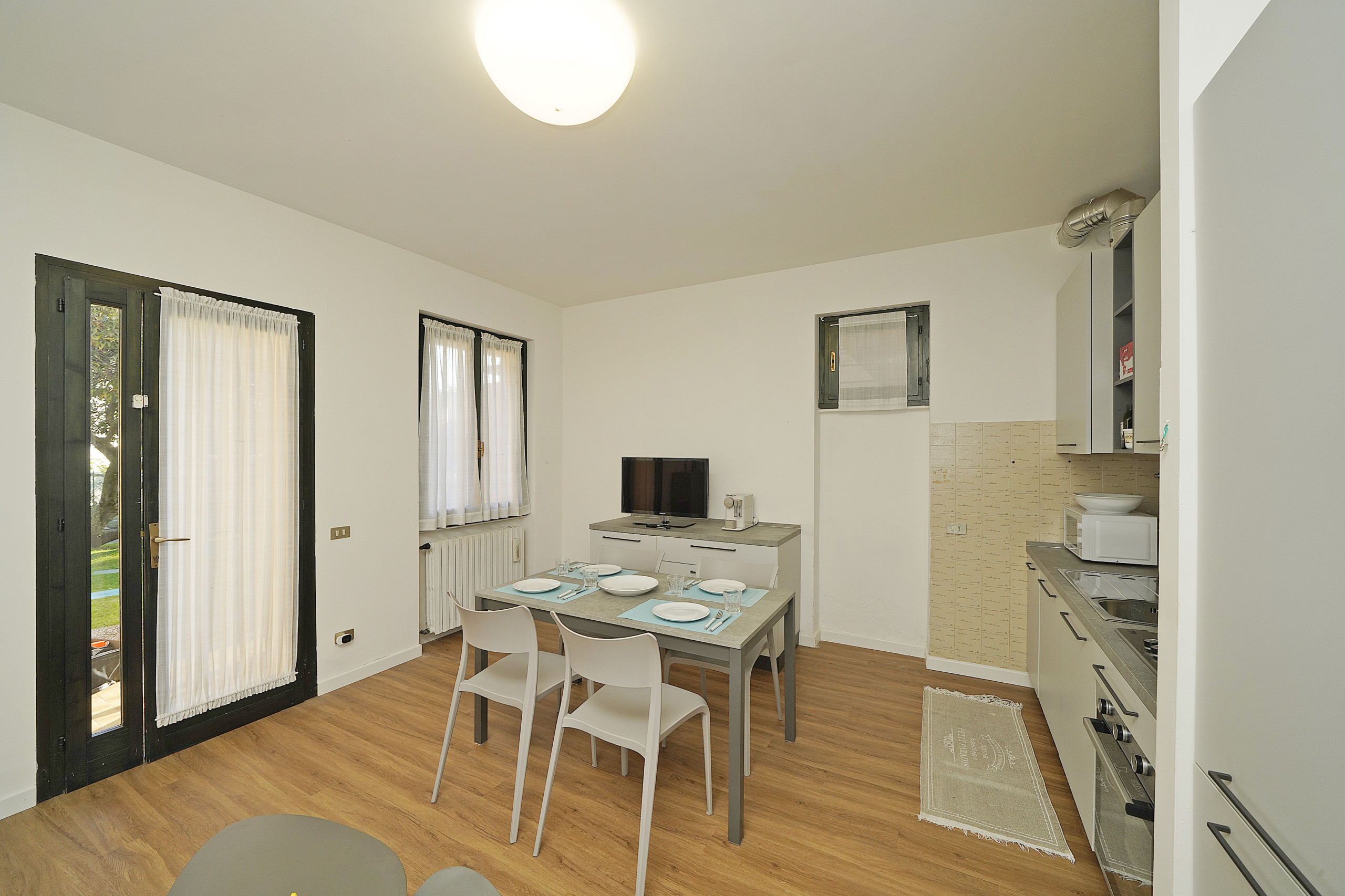 Outside, the garden represents a pleasant additional space where one can relax, read a book, or enjoy moments in the open air after a day by the lake.