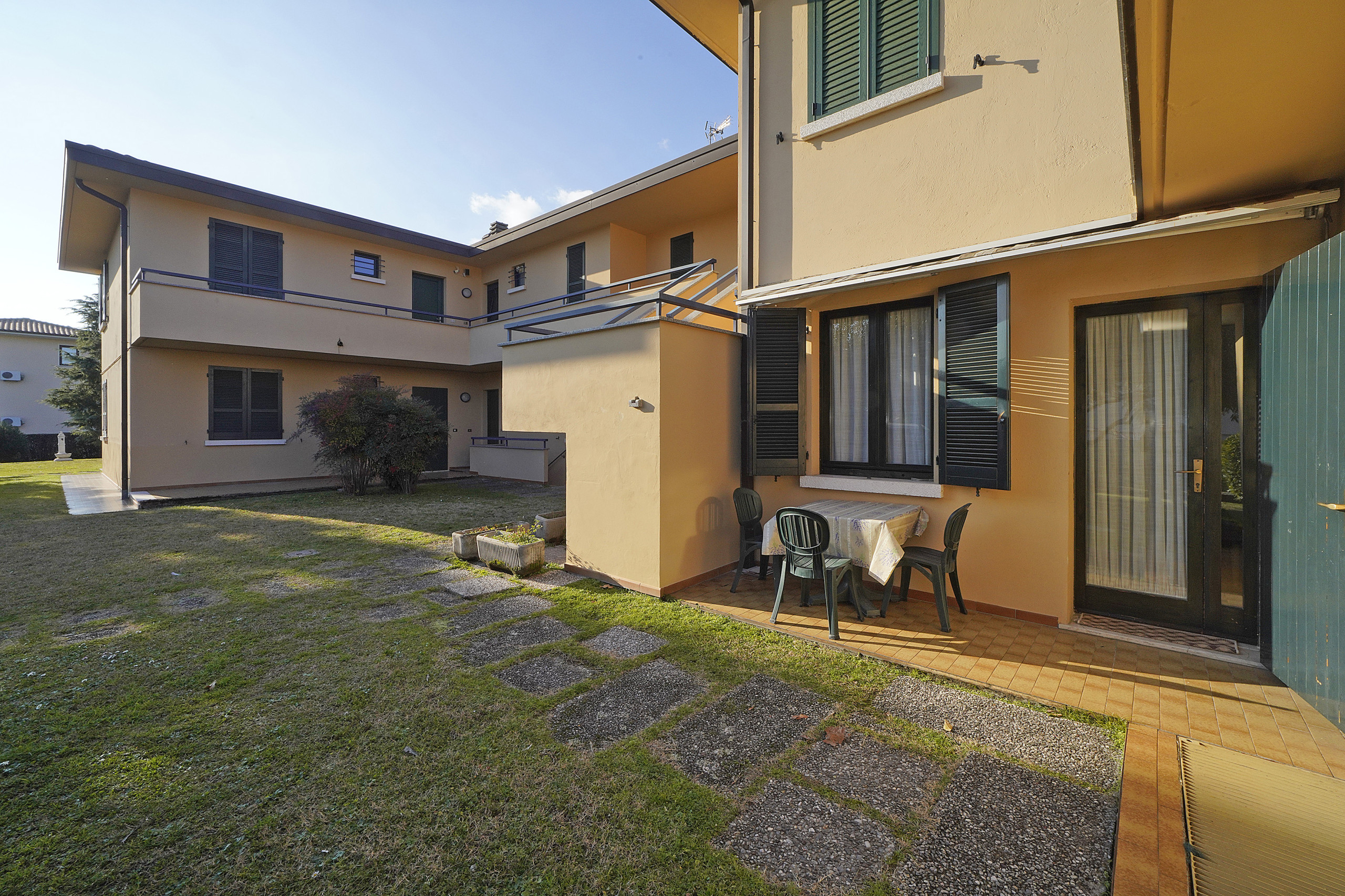 At the disposal of guests, there is also a large and well-maintained communal swimming pool, ideal for cooling off during summer days, and a covered private garage, for an even more comfortable and worry-free stay.