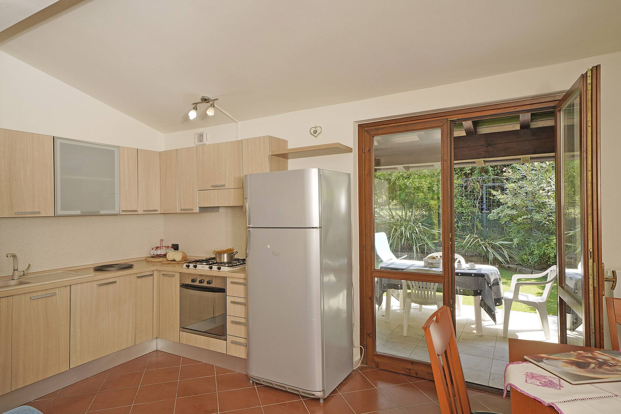 Lovely terraced house in quiet side street. Access without stairs. Large living room: sofa and dining table. Fully equipped gas kitchen: fridge with freezer, crockery and cookware, coffee maker, oven, microwave, toaster. Large double bedroom with large wardrobe and balcony; 2nd bedroom with 2 single beds (1 pull-out bed); 1 bathroom: washbasin, bidet, shower, washing machine. Balcony with garden view. Front and rear garden equipped with table and chairs. Air conditioning in the sleeping area.