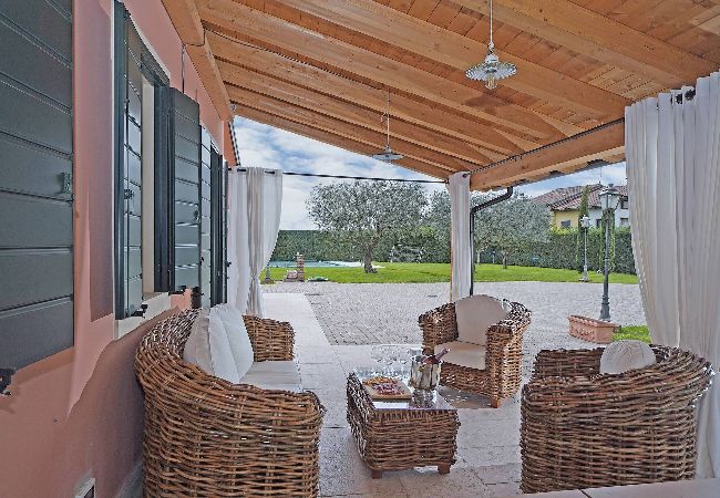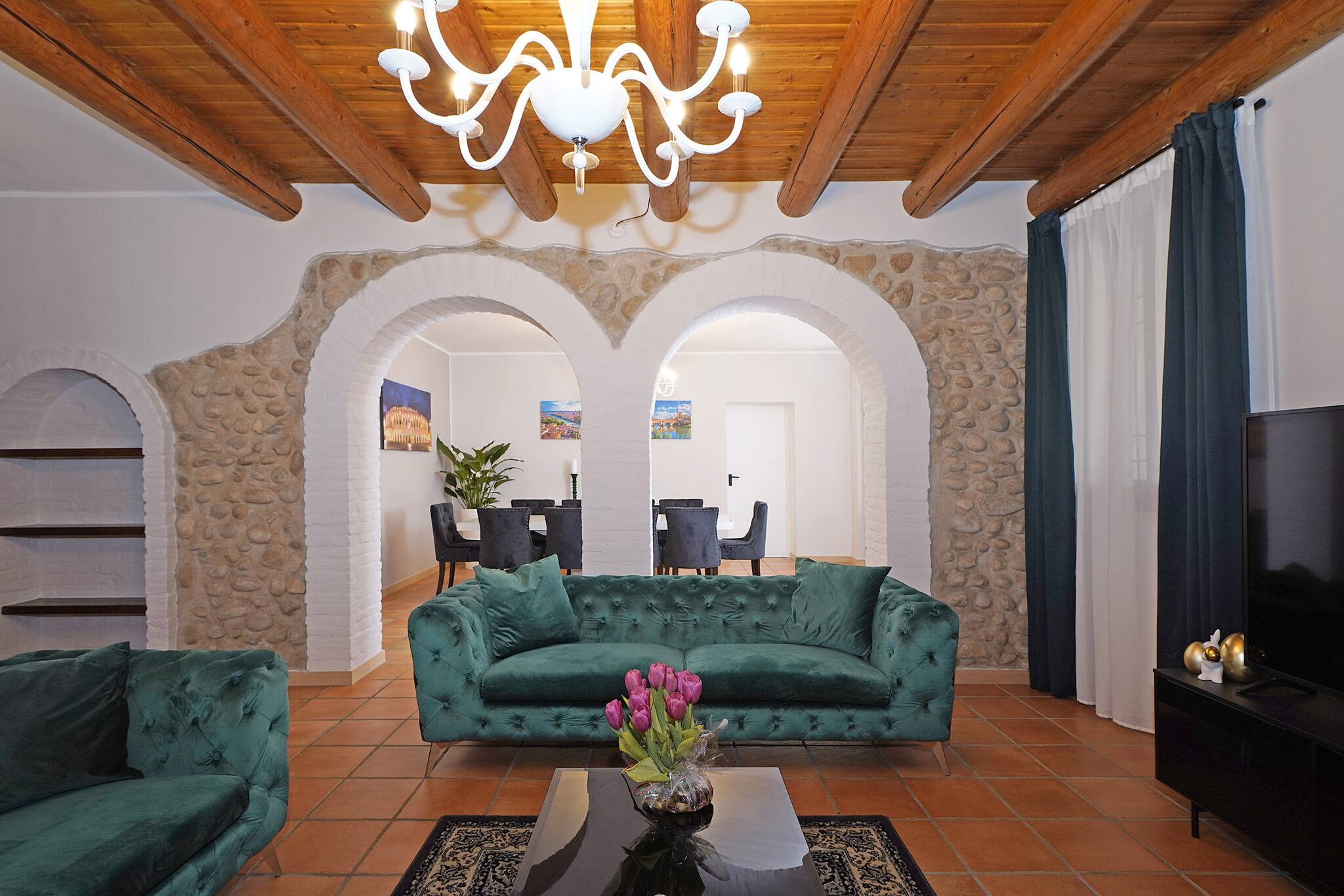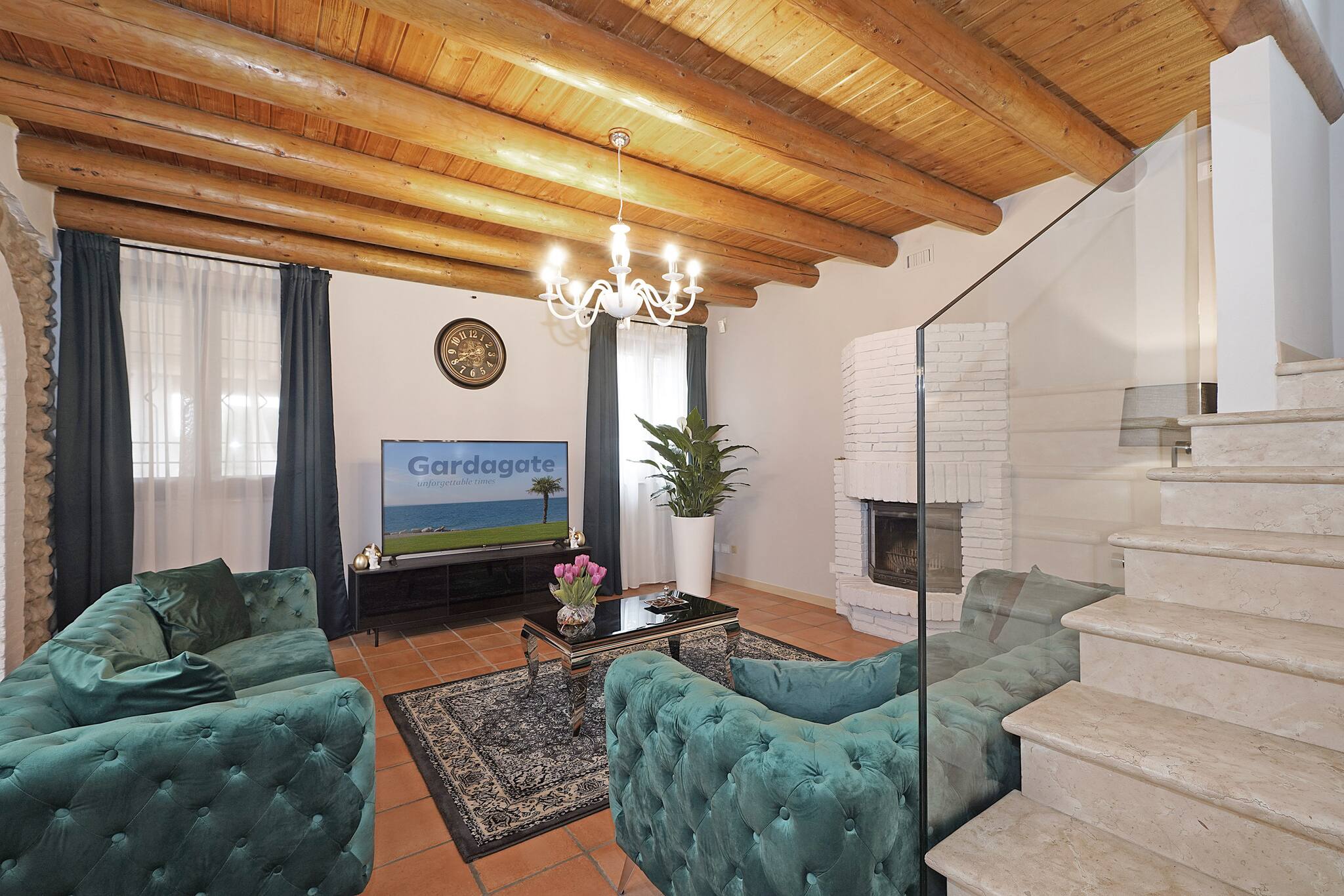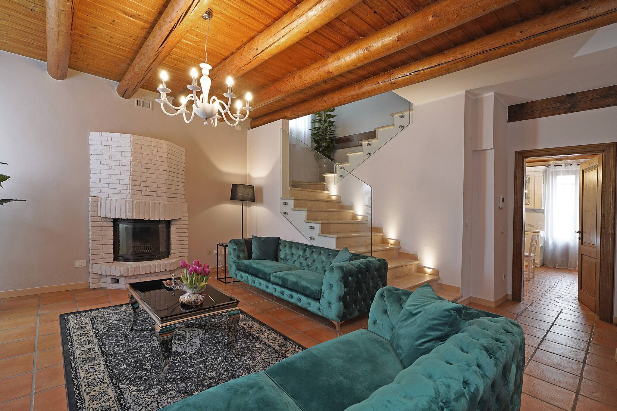 Historic single villa a few kilometres from the city of Verona, surrounded by vineyards. Developed on two floors as follows: ground floor with living room with fireplace, two sofas, smart TV with 52' with Sky platform. Separate 20 sqm gas kitchen fully equipped: oven, microwave, coffee maker, toaster, kettle, American fridge with freezer. Double room with sofa bed and desk for smart working; bathroom with shower, sink, toilet, bidet.