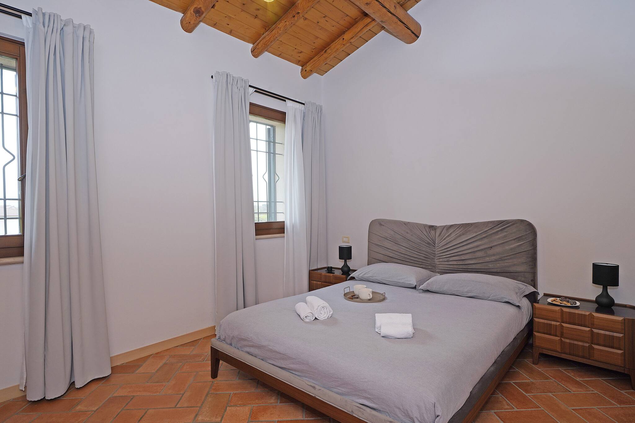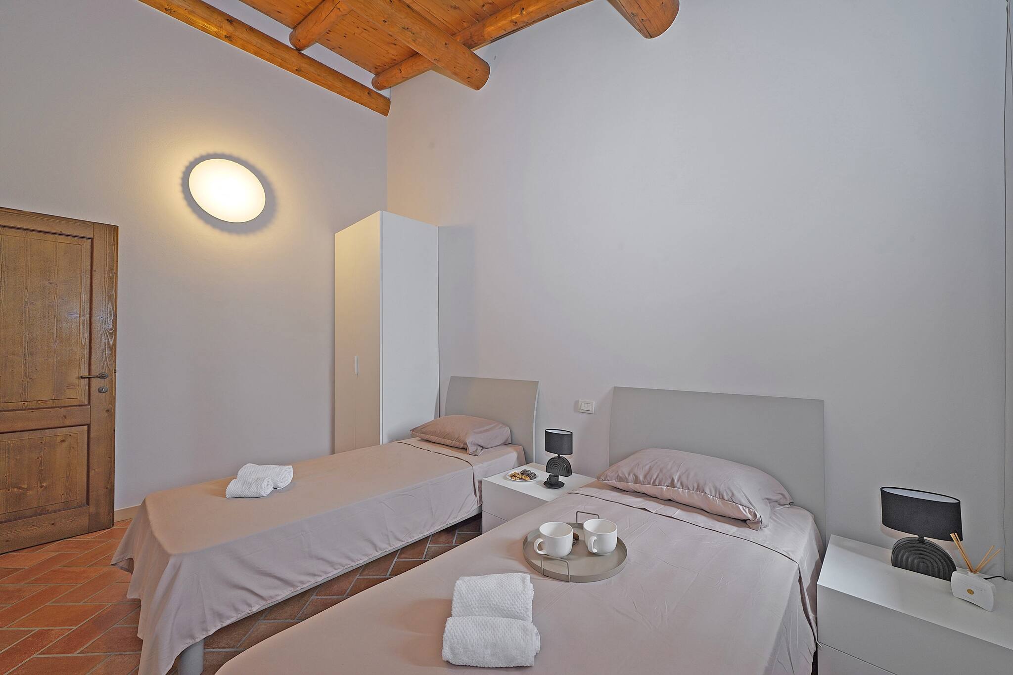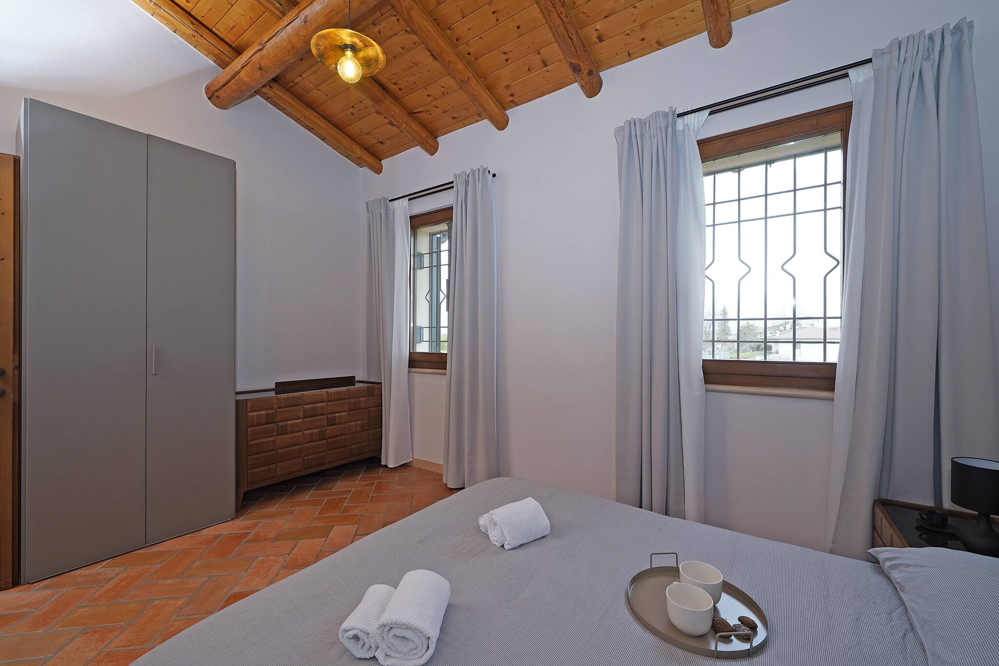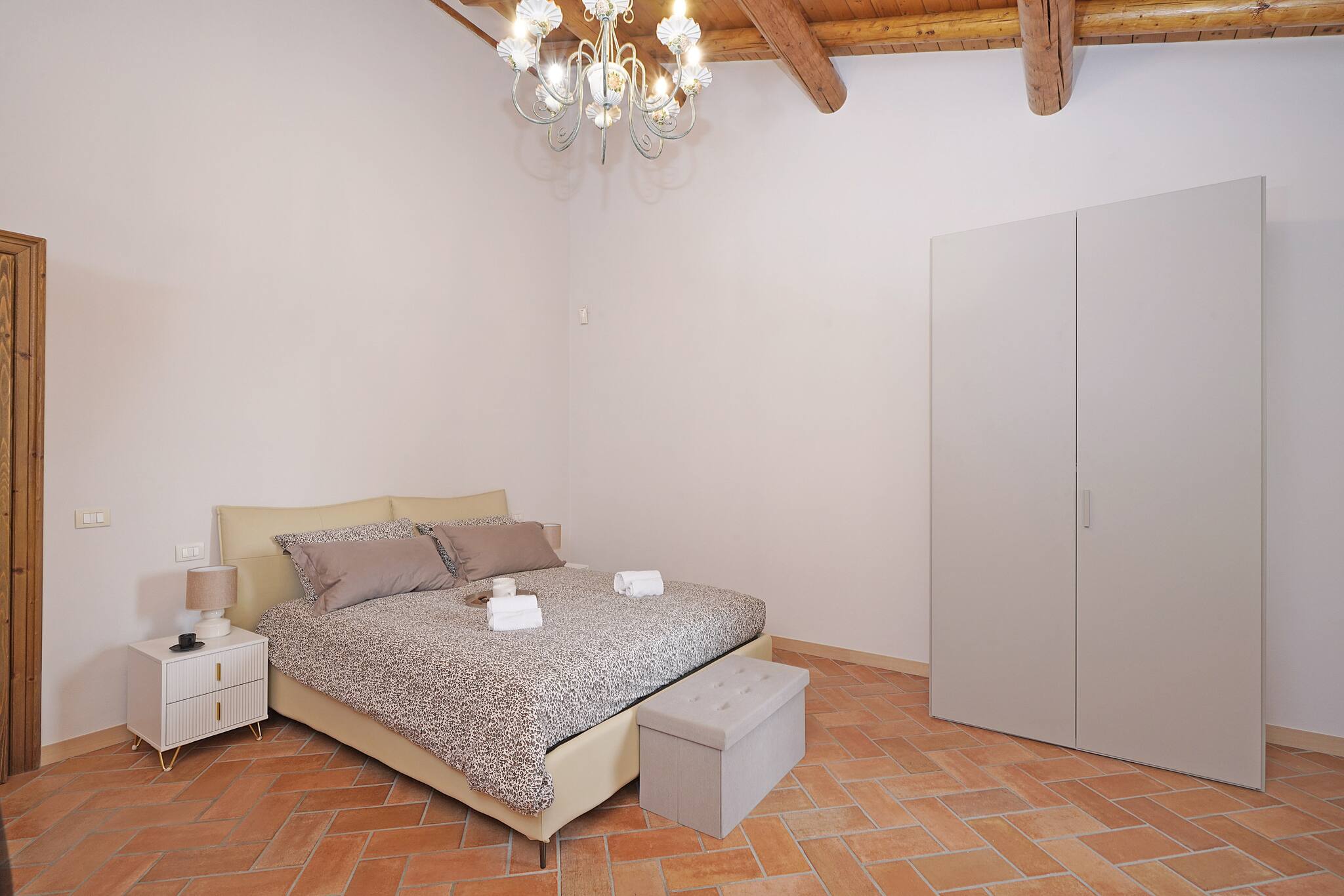 On the second floor, reached by stairs, there are 3 large double bedrooms with wardrobes, one with twin beds and 2 bathrooms with shower, washbasin, toilet, bidet. Surrounded by a private garden equipped with table, chairs and barbecue. Air conditioning and state-of-the-art underfloor heating. Valuable features: finishes, renovated in 2023, exposed beams, some walls dating back to 1500 preserved. Strong points: private swimming pool at guests' free disposal. 2 parking spaces inside the property, 2 parking spaces in the garage.